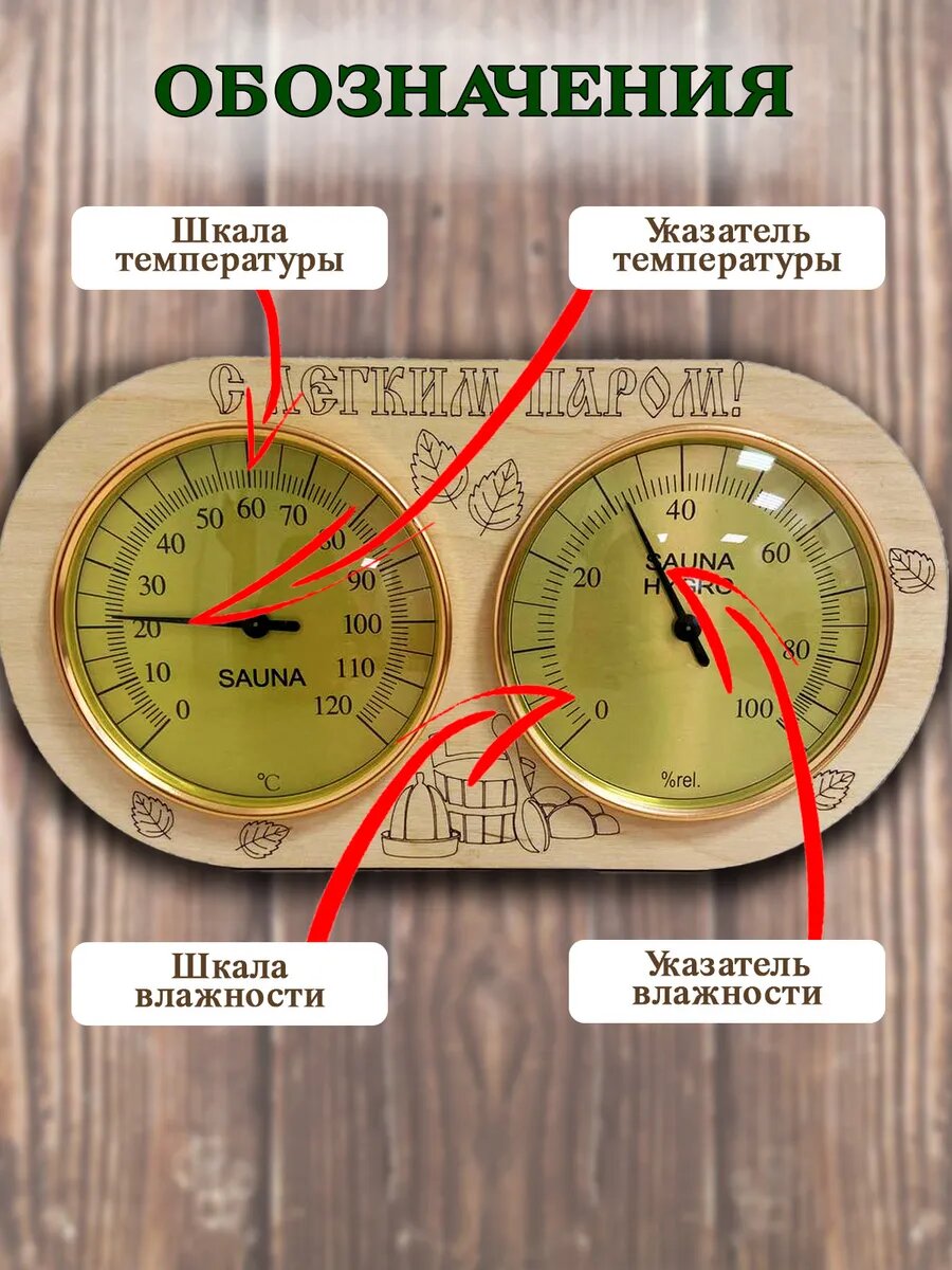 Термометр гигрометр Банный Рай, биметаллический, для бани, дерева, бежевый интересное: