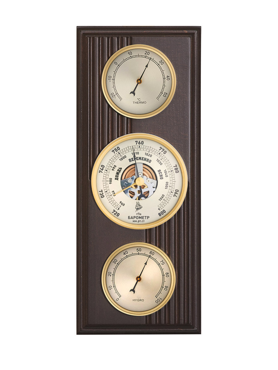 Метеостанция механическая Бриг БМ93303-1-В, настенное крепление. Цвет венге. Барометр, термометр, гигрометр. интересное: