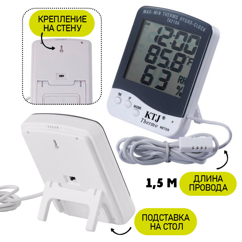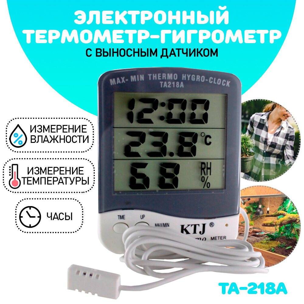 Термометр гигрометр цифровой TA-218A электронный с выносным датчиком , цвет белый интересное: