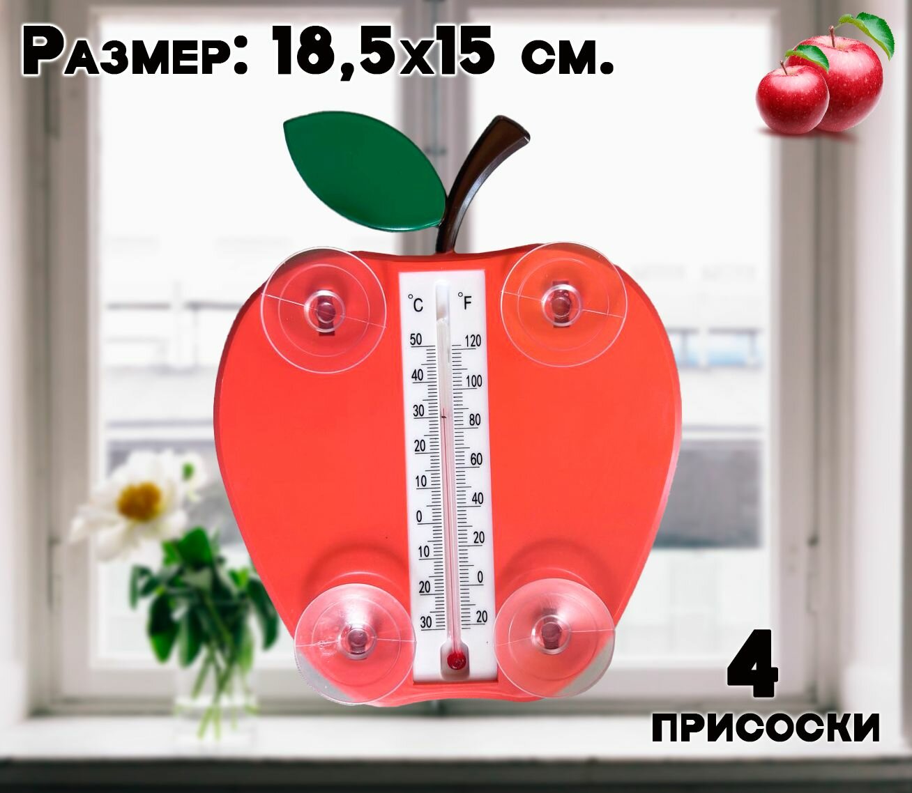 Термометр уличный "Яблоко", цвет красный / Термометр на окно АМ-185 / Градусник интересное: