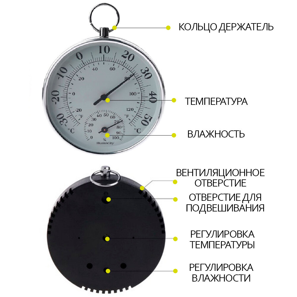 Термометр гигрометр комнатный TH-9100-SC механический стрелочный цвет серебристый интересное: