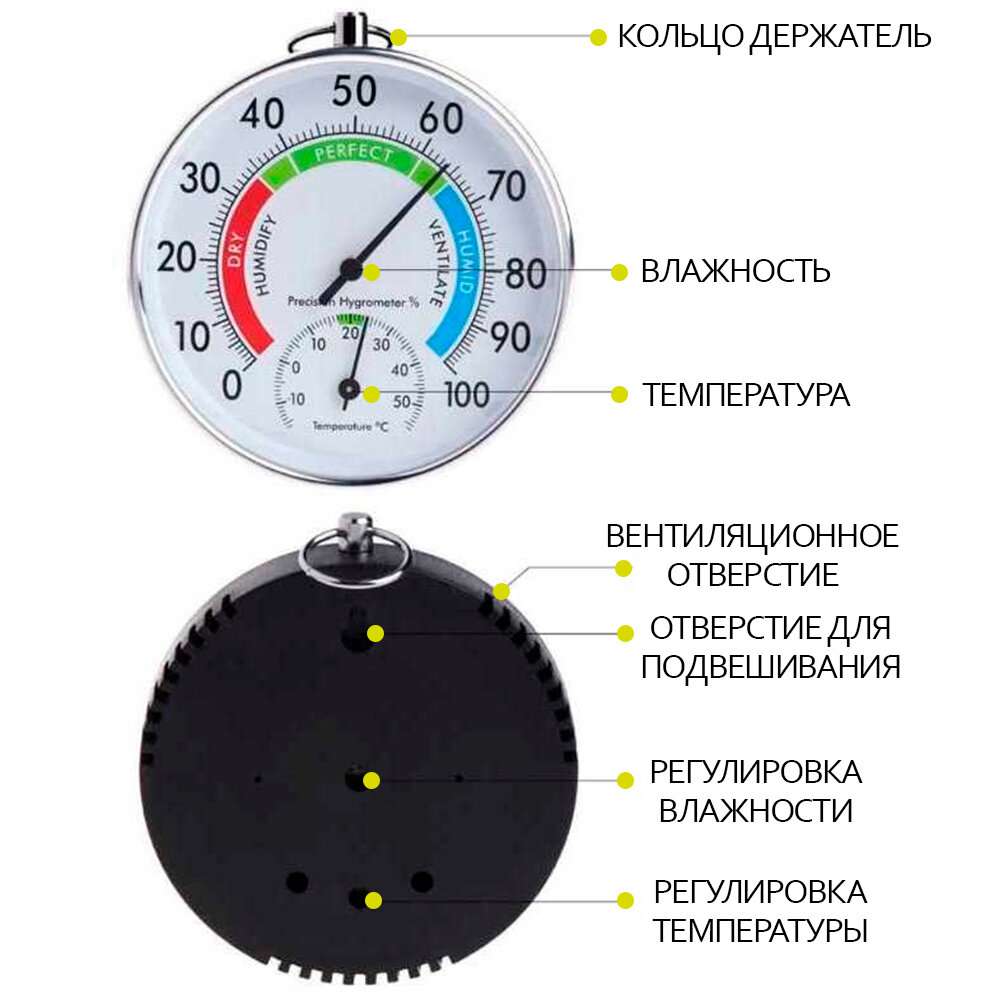 Термометр гигрометр механический настенный / TH-9100-C цвет белый интересное: