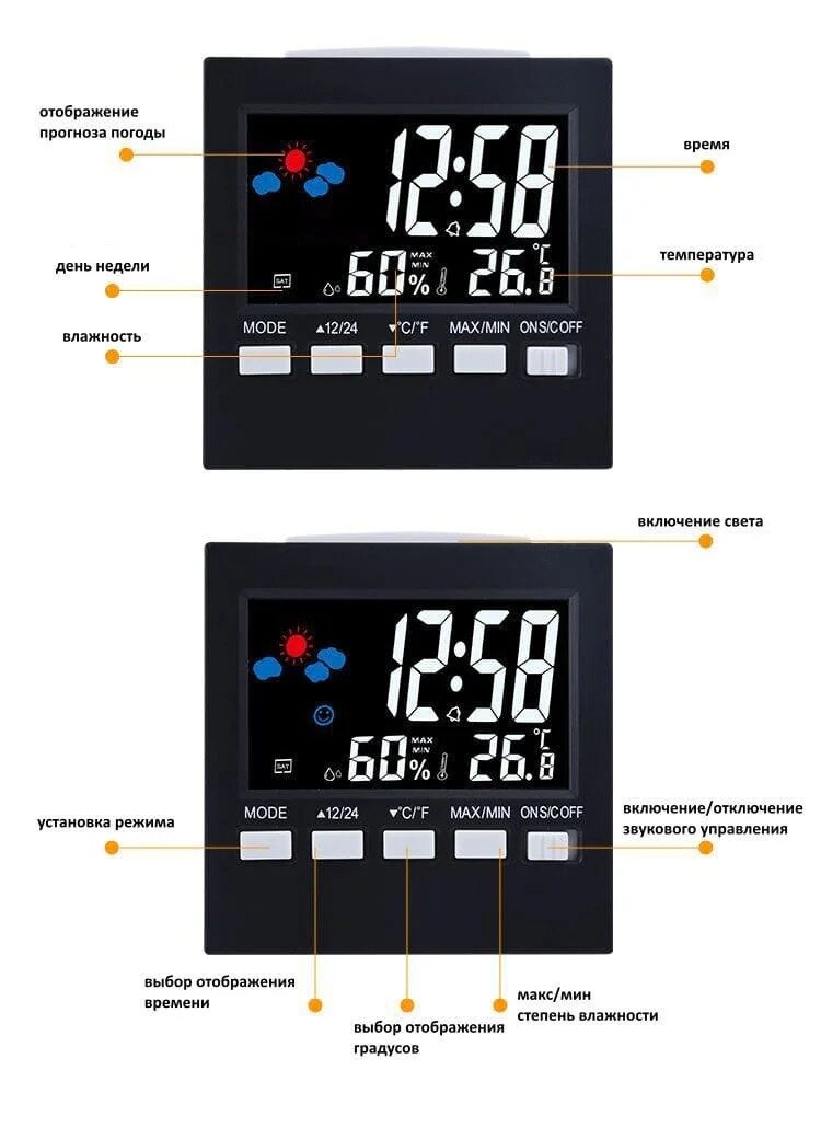 Термогигрометр, Метеостанция 2159T (термометр, гигрометр, часы), цвет-черный интересное: