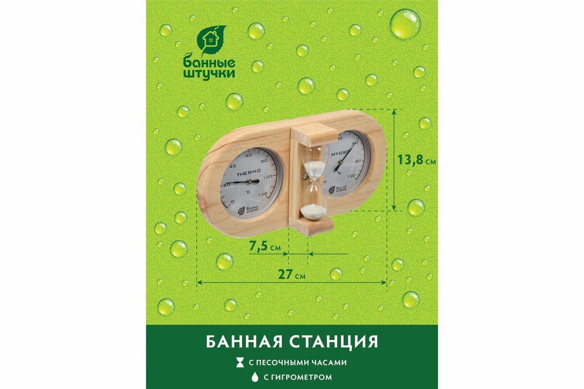 Термометр-гигрометр для бани и сауны банные штучки Банная станция с песочными часами (18028) интересное: