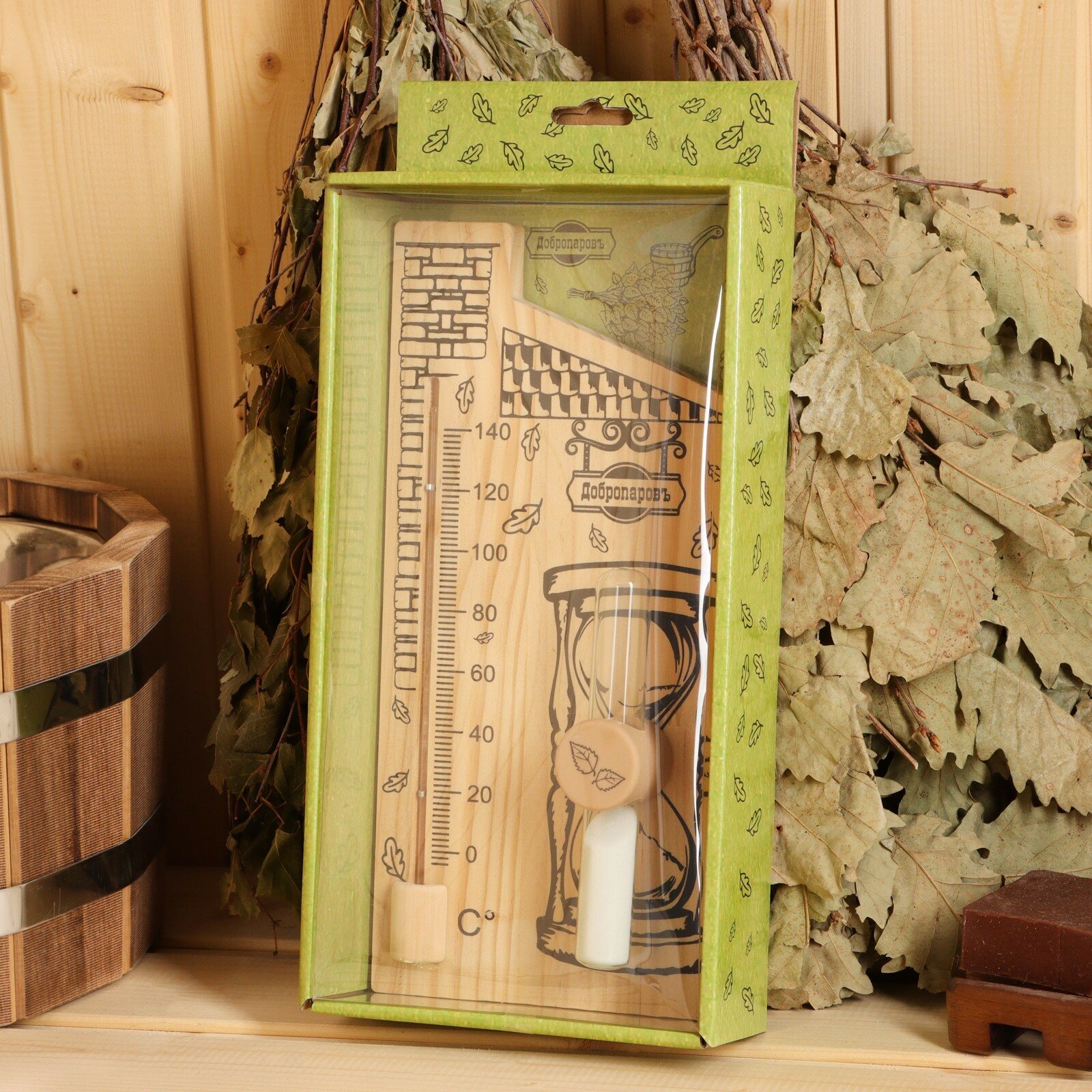 Термометр для бани с песочными часами "Дом", деревянный, 28 х 14 см, Добропаровъ, 9785833 интересное: