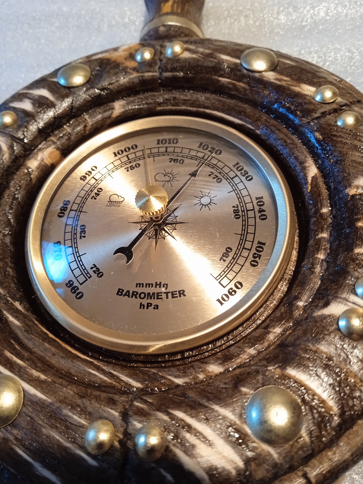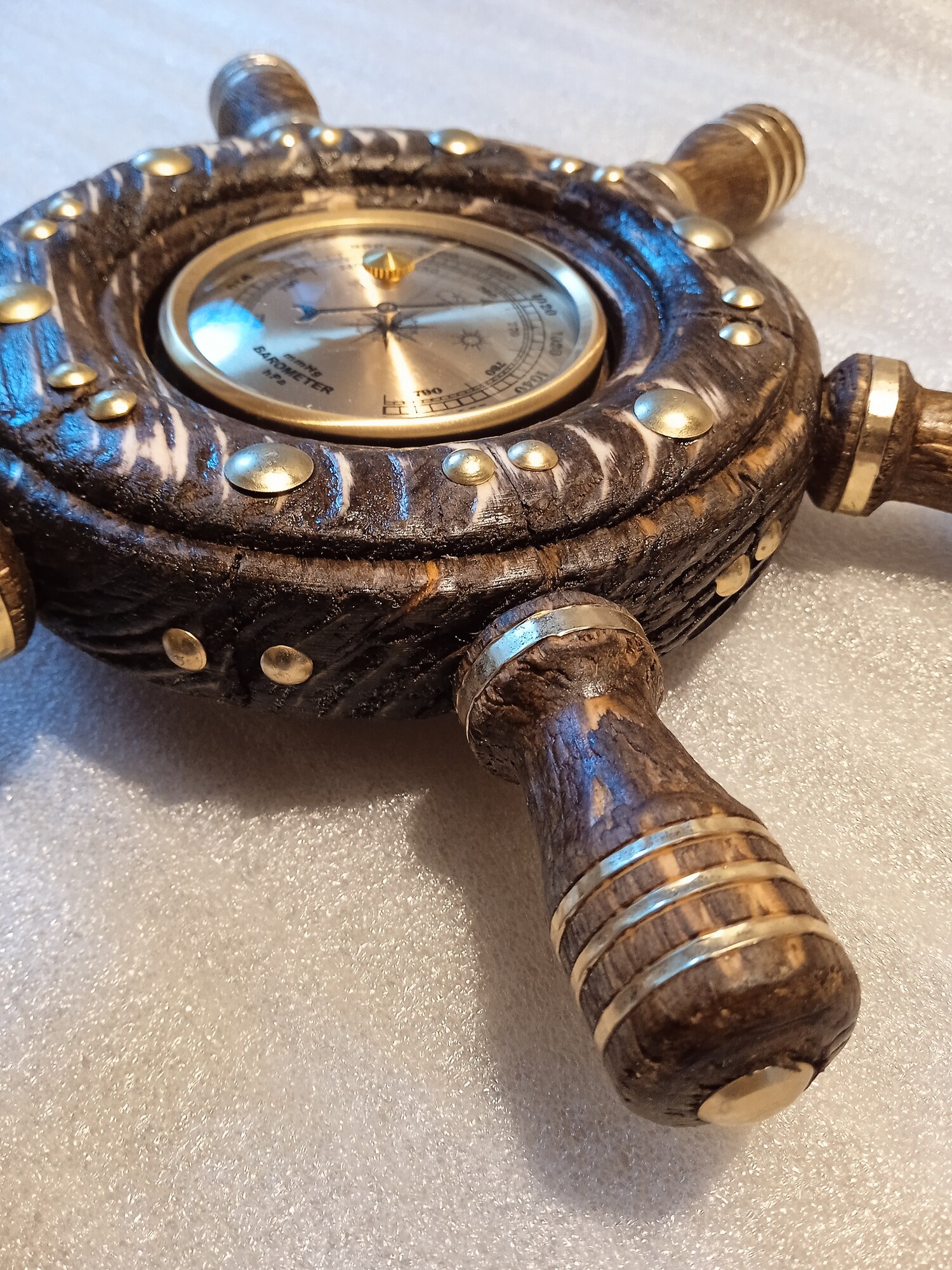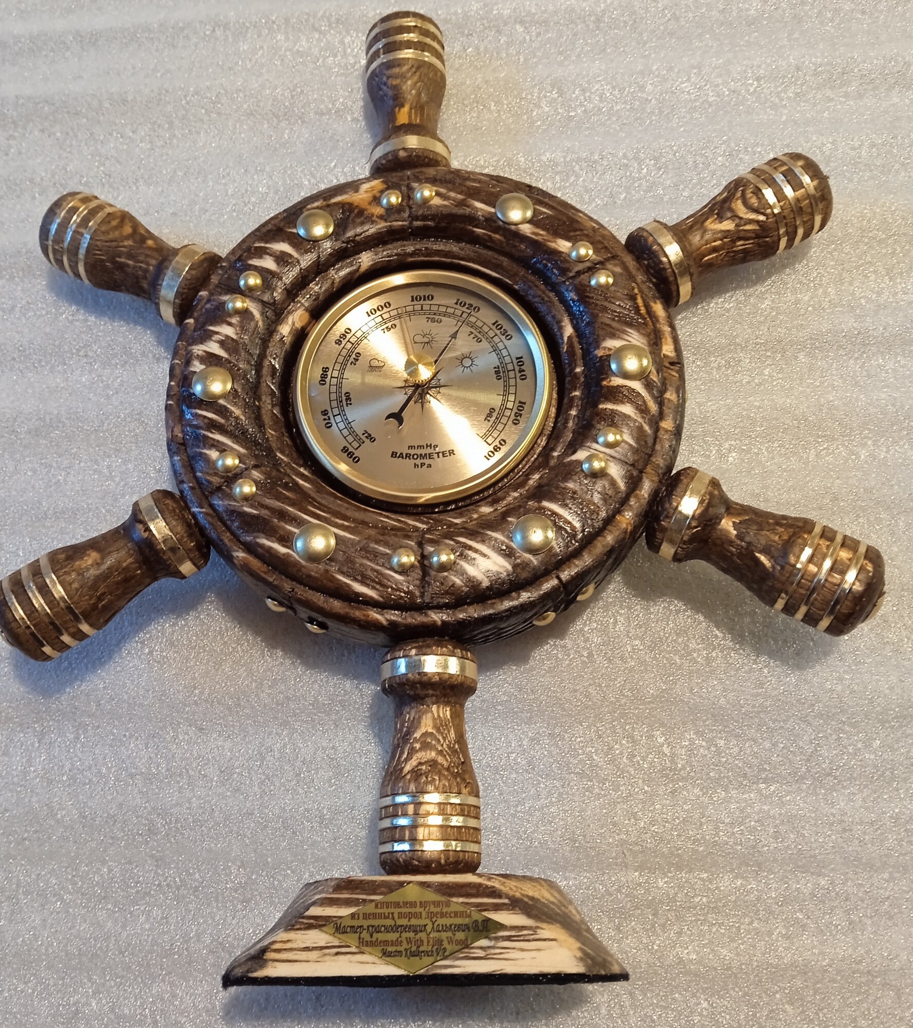 Штурвал с барометром светлый матовый настольный.