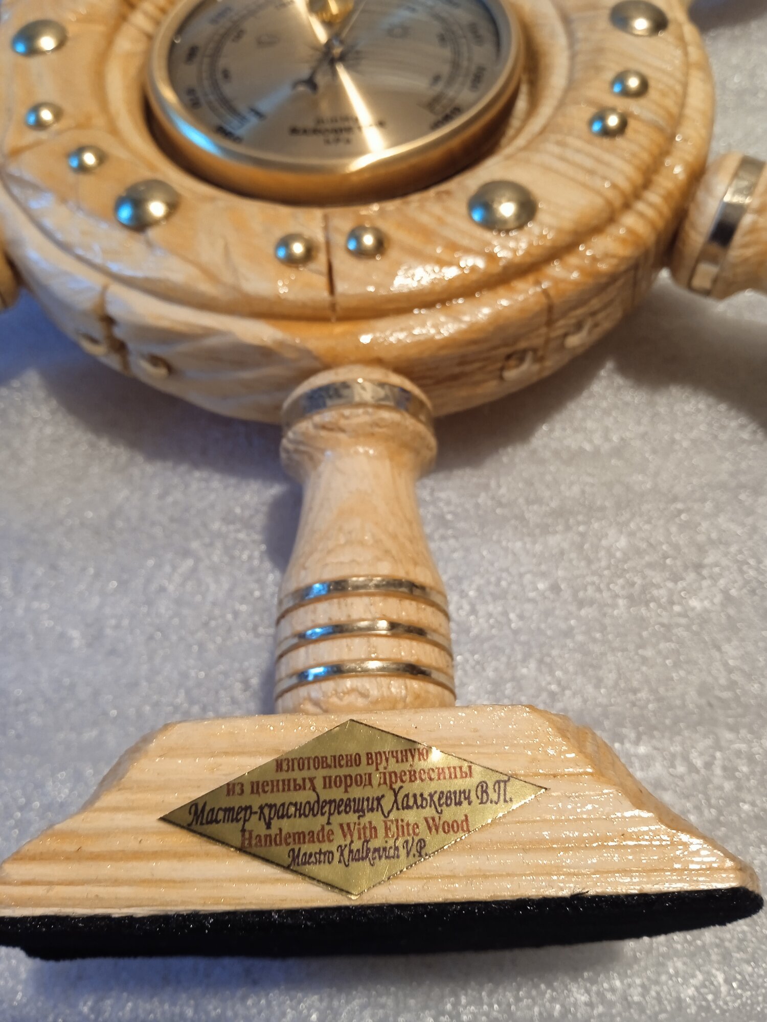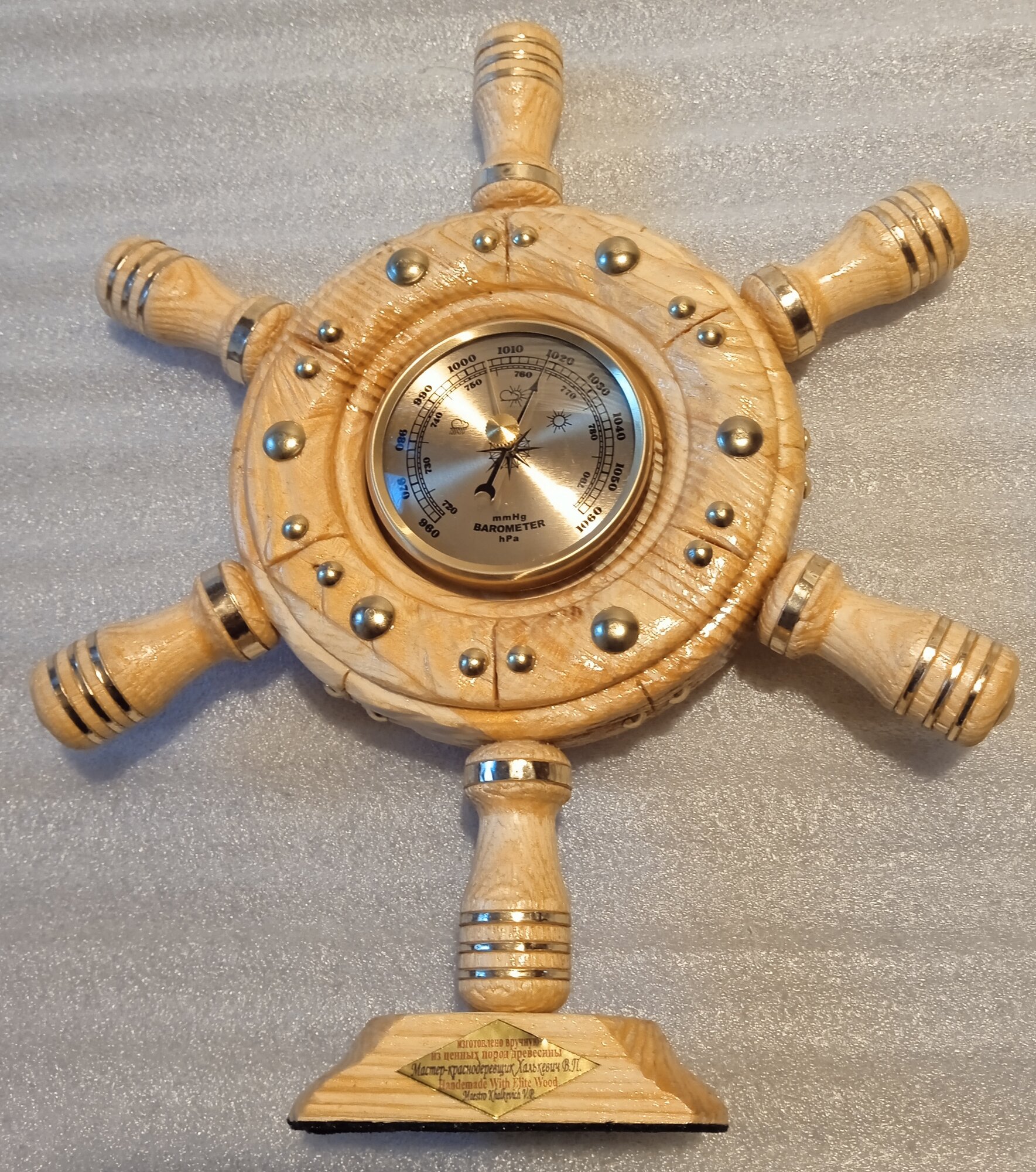 Штурвал с барометром светлый глянцевый настольный. интересное: