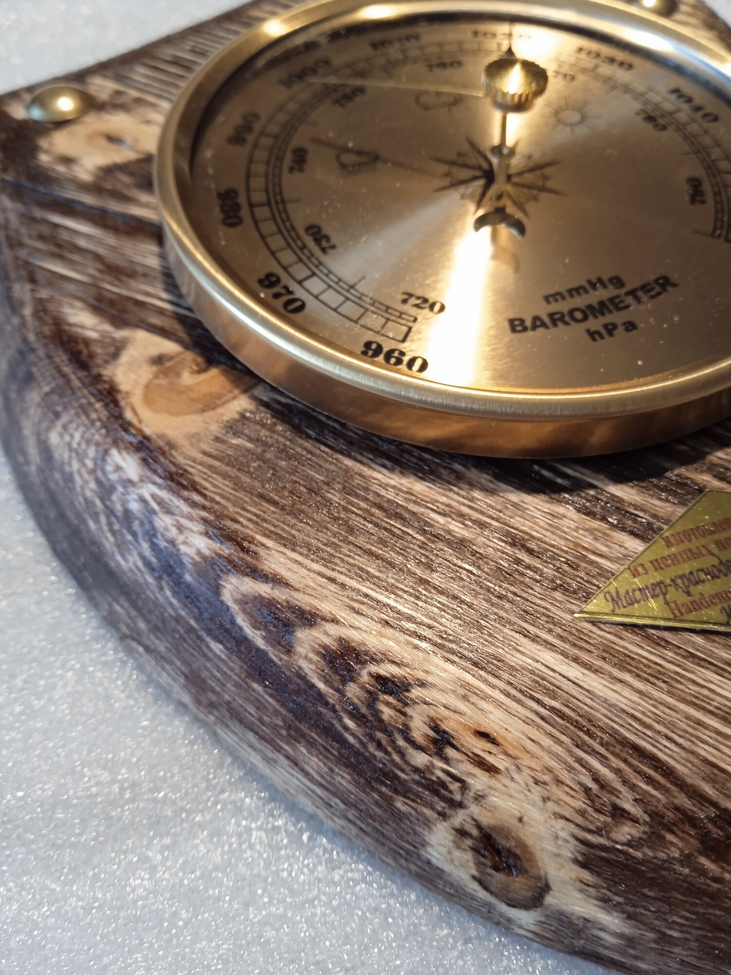 Щит с барометром 110 мм , 16 х 21 см. палисандр глянцевый. Ручная работа.