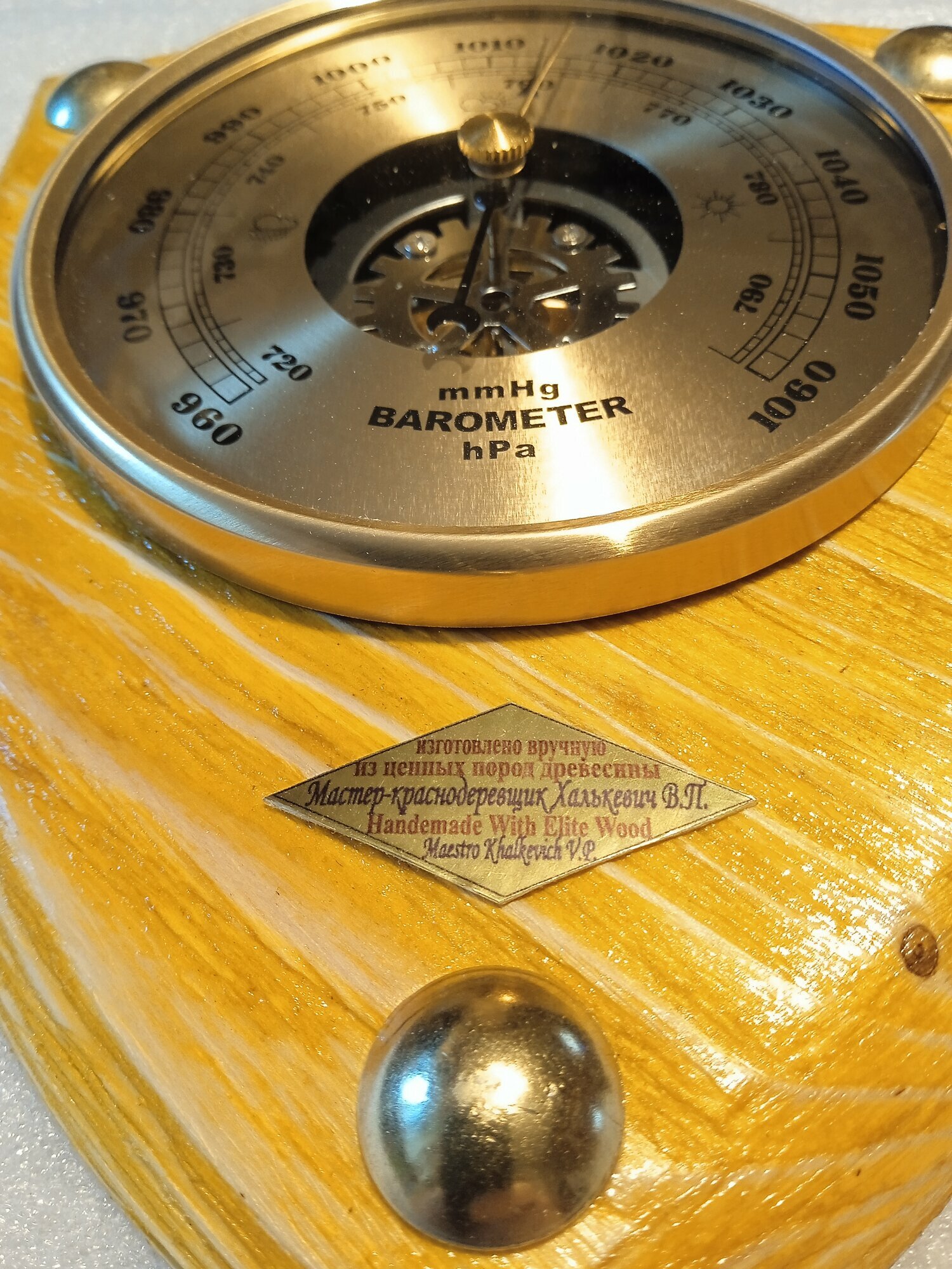 Купить Щит с барометром 110 , лимон , глянцевый .22/17 см. Ручная работа.