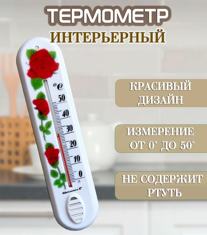 Термометр комнатный "Розы" ST-1122, цвет белый / Термометр интерьерный интересное: