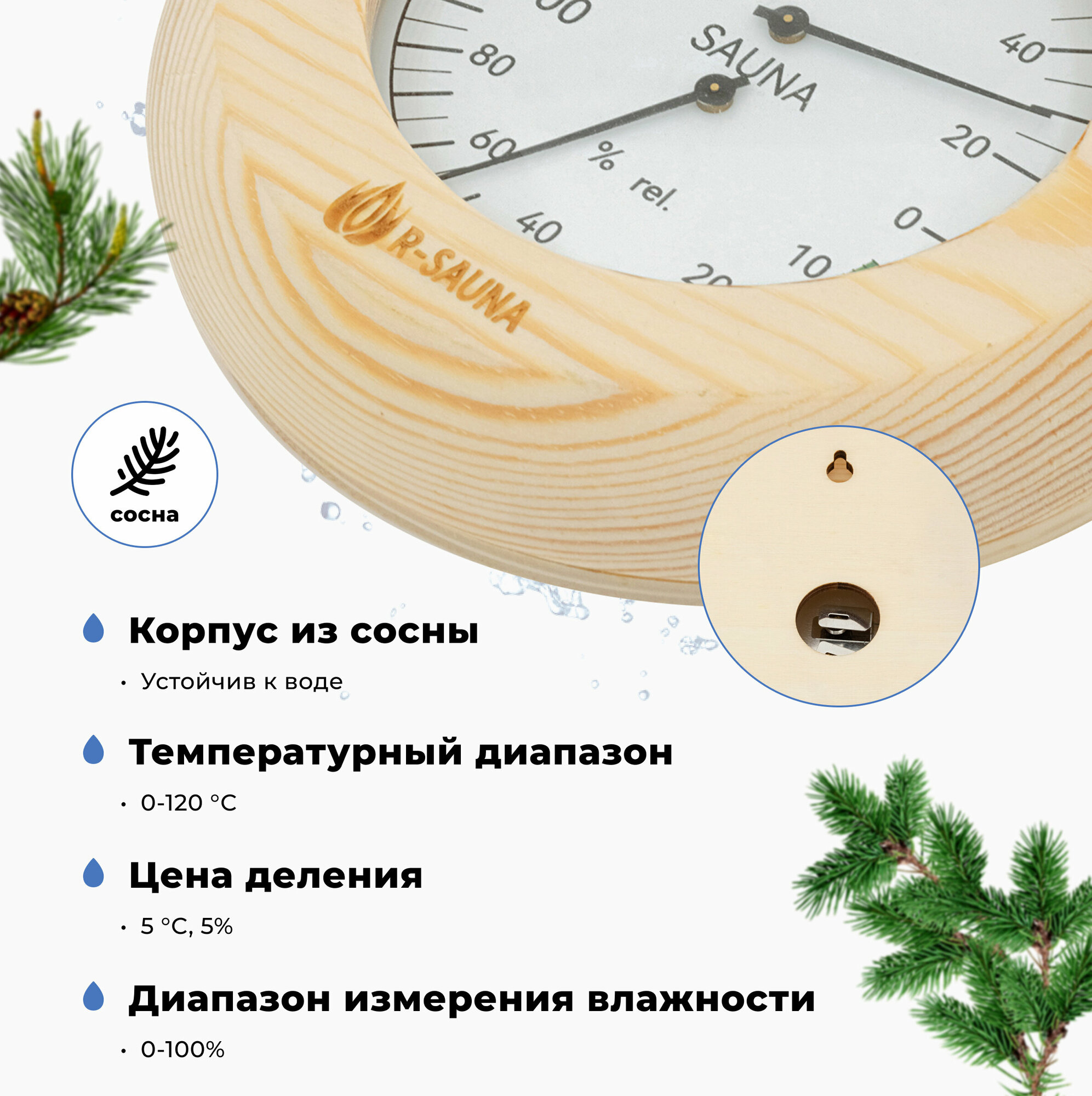 Термогигрометр для бани и сауны R-SAUNA, сосна, банная станция интересное: