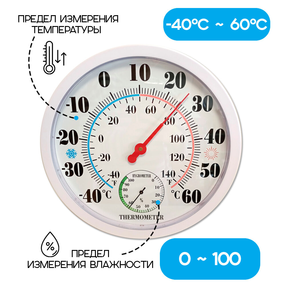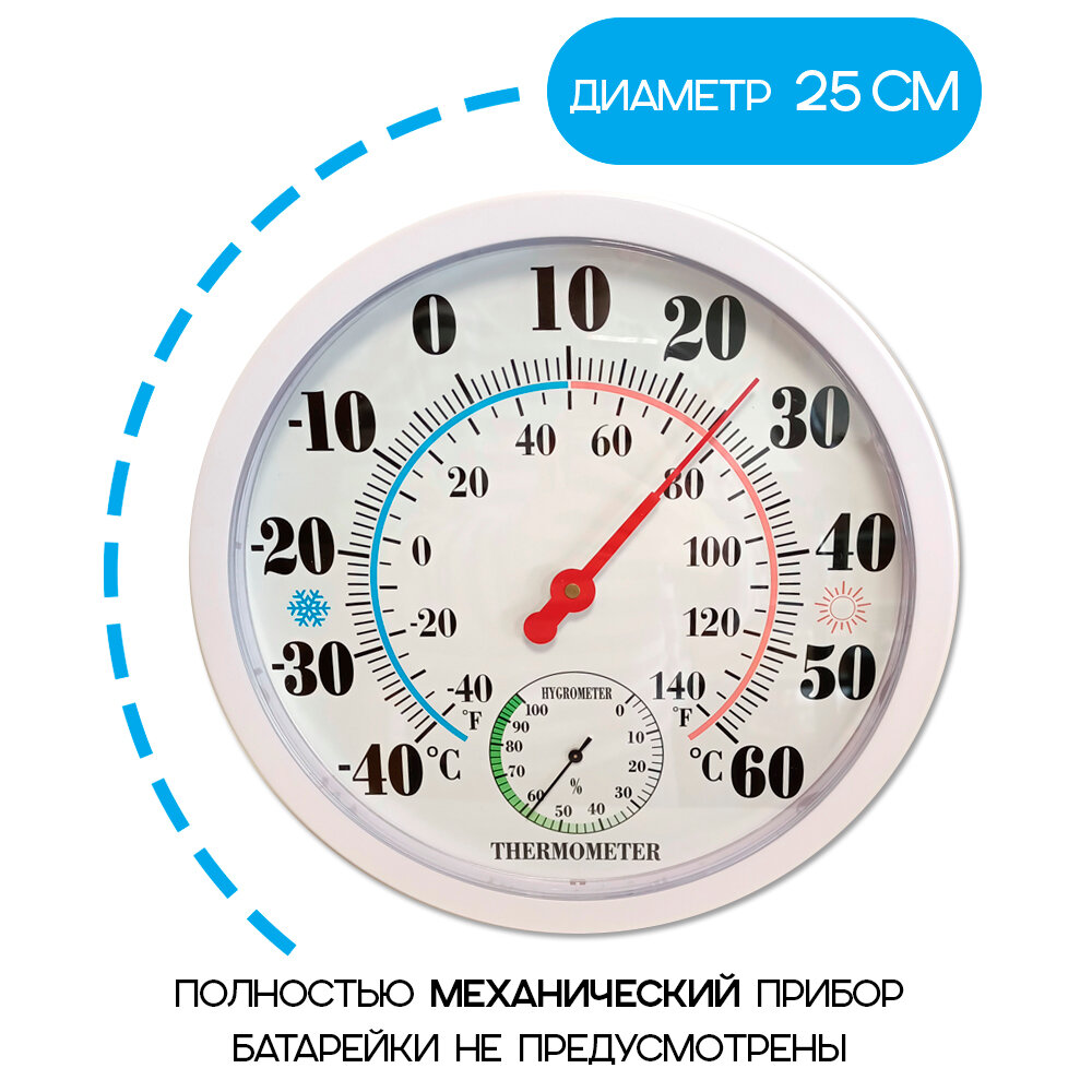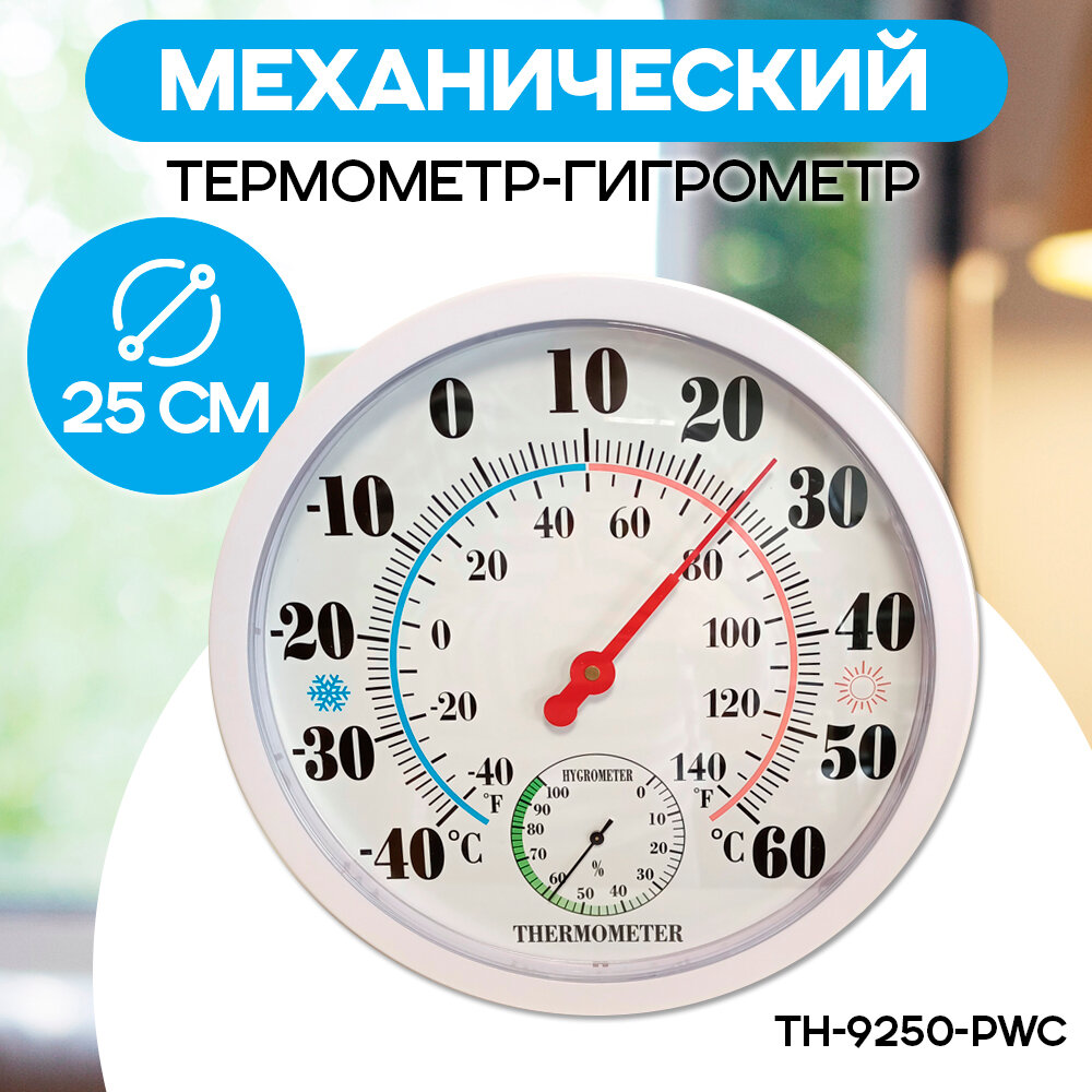 Термометр гигрометр TH-9250-PWC комнатный стрелочный, погодная станция настенный, белый интересное: