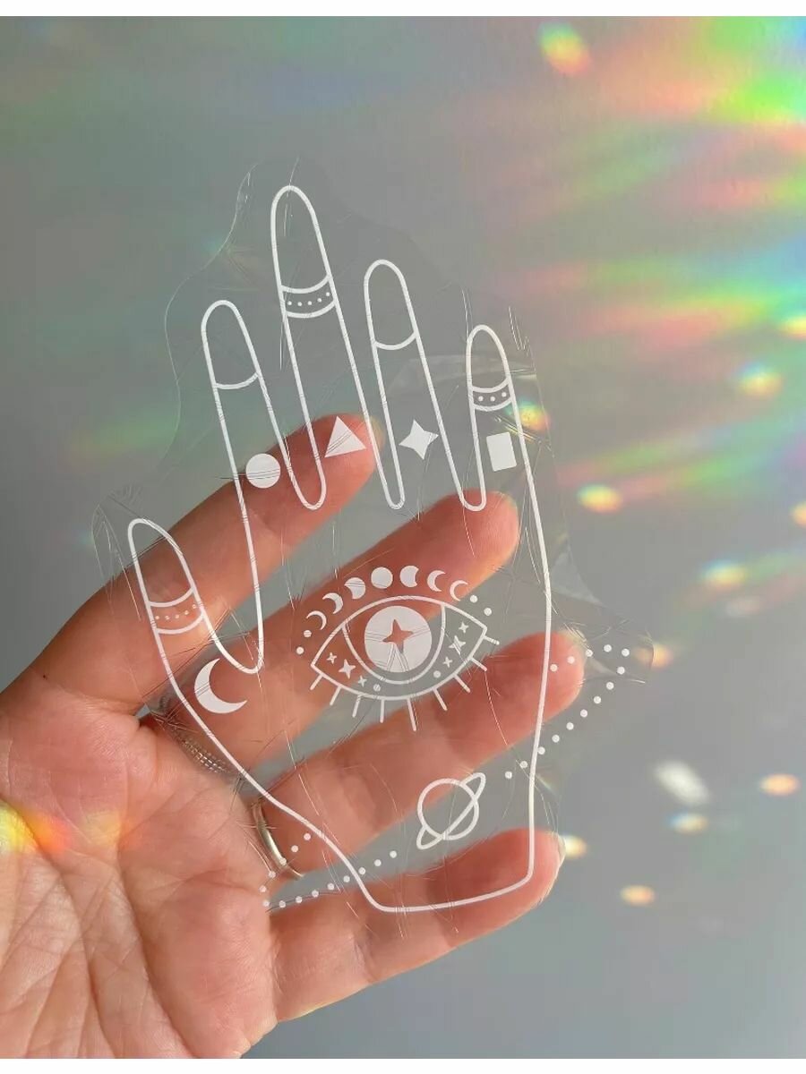 Купить Ловец солнца и света, радужная наклейка на окно Рука