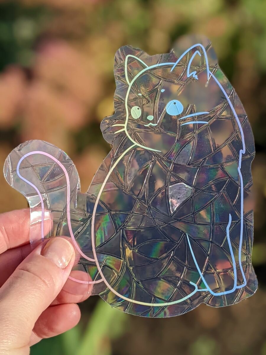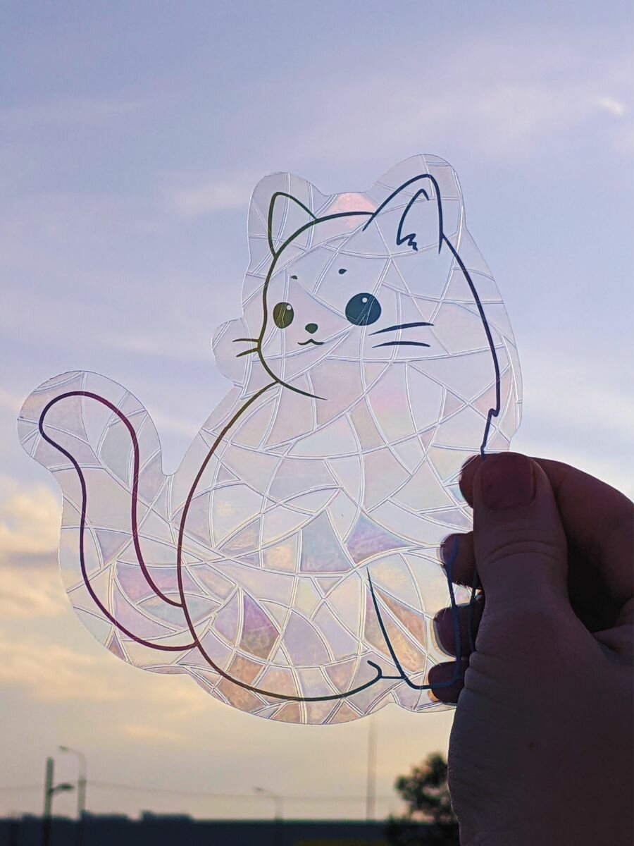 Купить Ловец солнца и света, радужная наклейка на окно Кошка