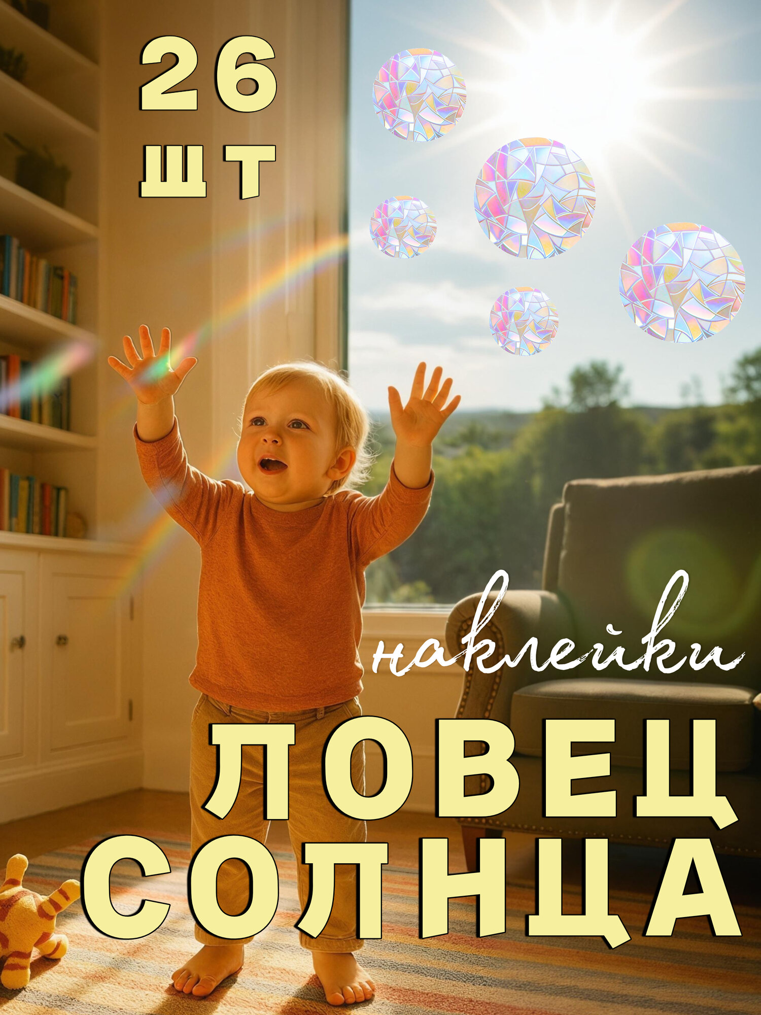 Ловец солнца наклейки самоклеящиеся на окно "Кружочки" 26 шт, радуга в доме интересное: