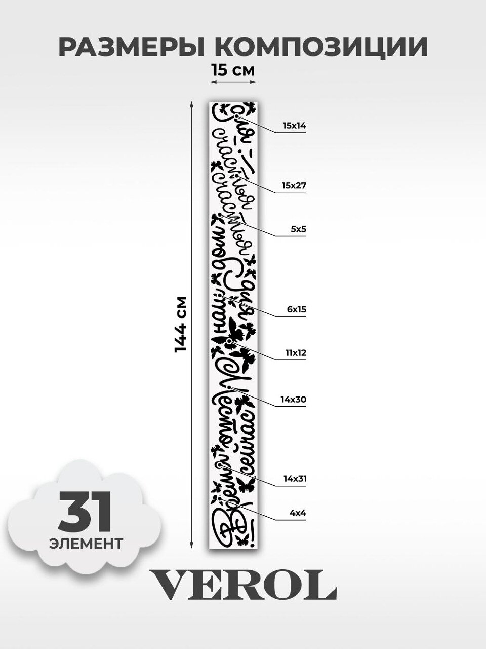 Наклейки интерьерные VEROL "Цитата" на стену, декор для дома, стикеры самоклеящиеся. интересное: