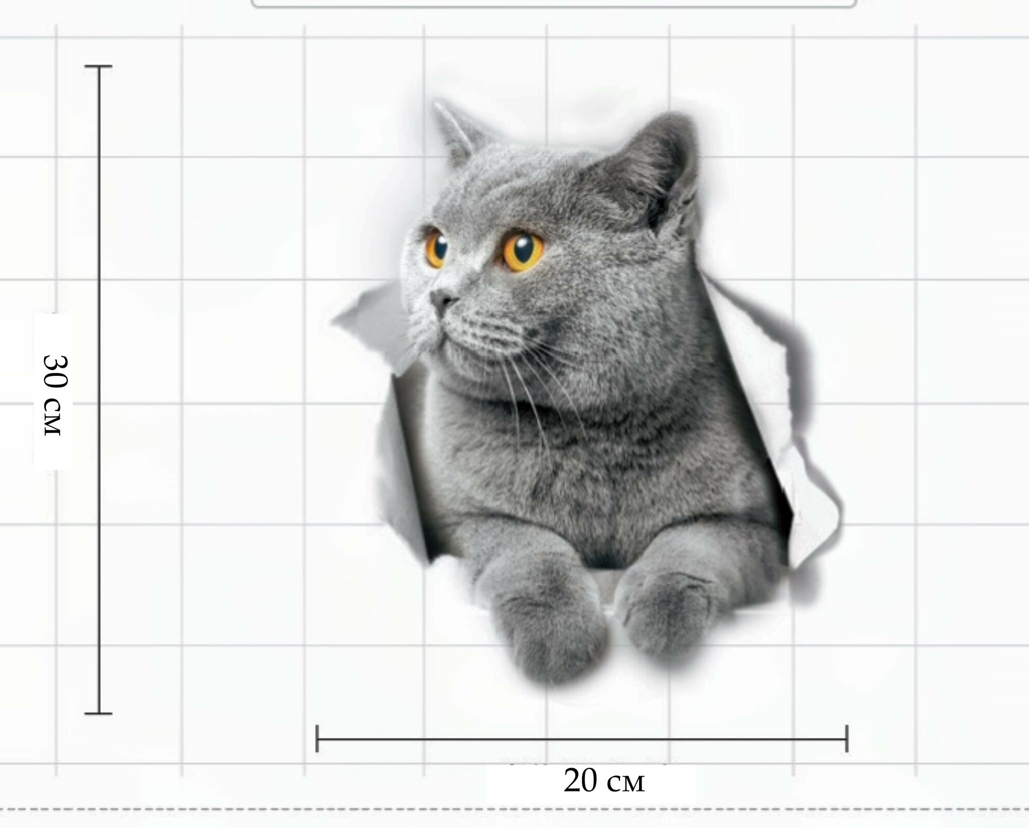 Интерьерная наклейка "Кот" на стену, унитаз, мебель, технику, глянцевая, 20х30 см, №3 интересное: