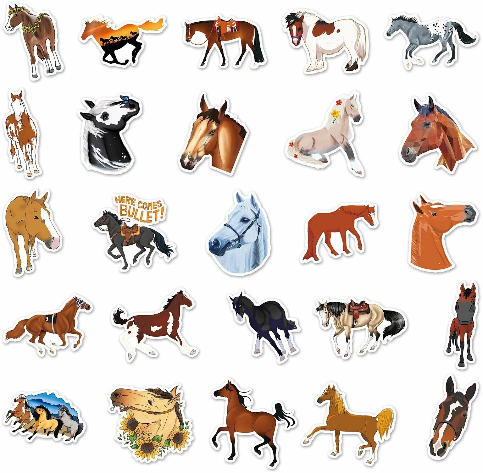Купить Наклейки стикеры лошади 50шт. Виниловые