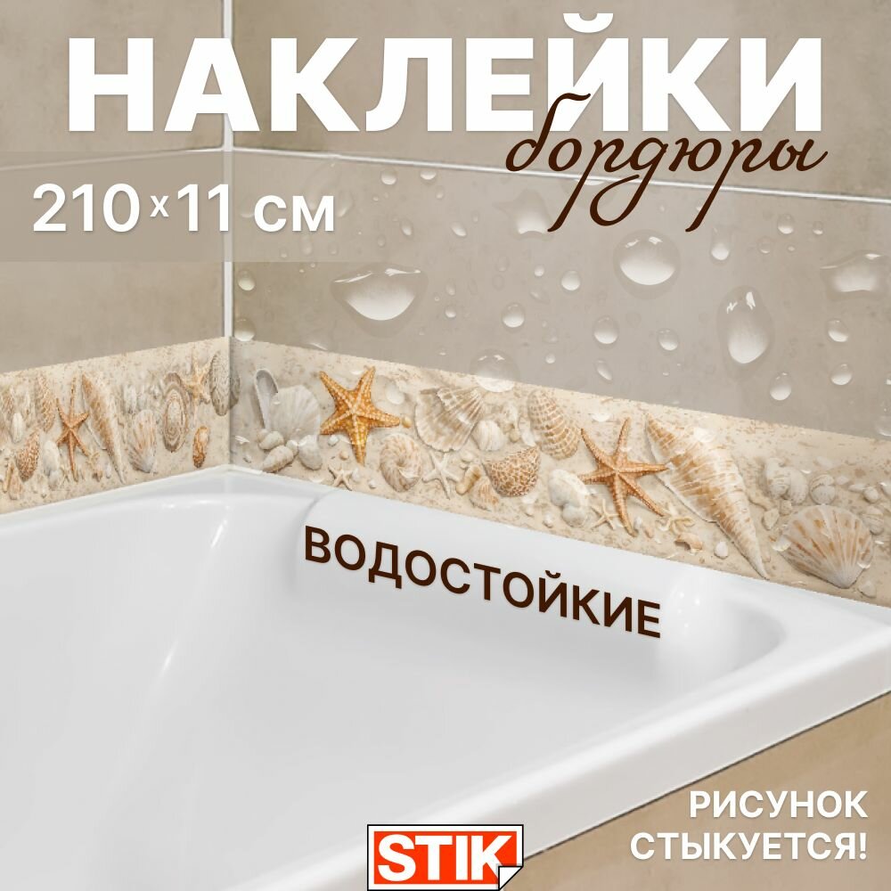 Купить Интерьерные наклейки декоративные морской бордюр на стену кухни и ванны с морским коньком и звездами