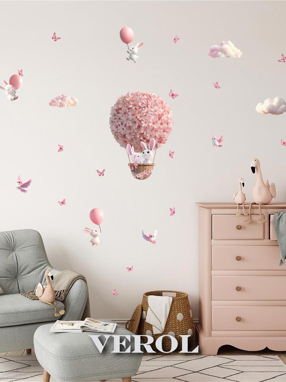 Наклейки интерьерные VEROL "Зайцы на воздушных шарах" на стену, декор для дома, стикеры самоклеящиеся, украшения для комнаты, подарок