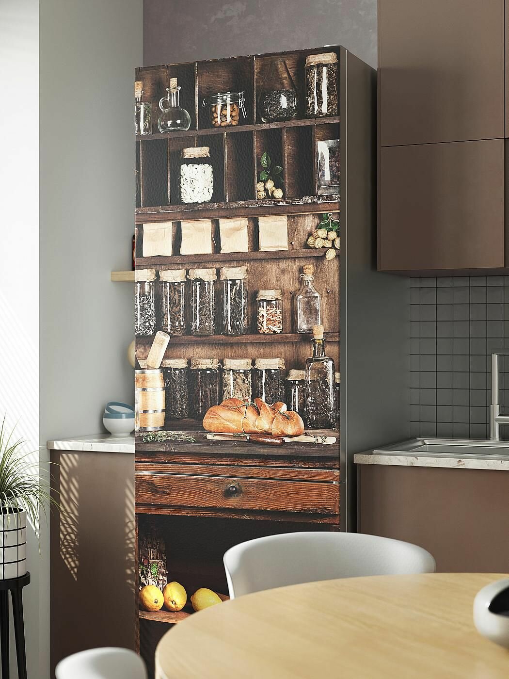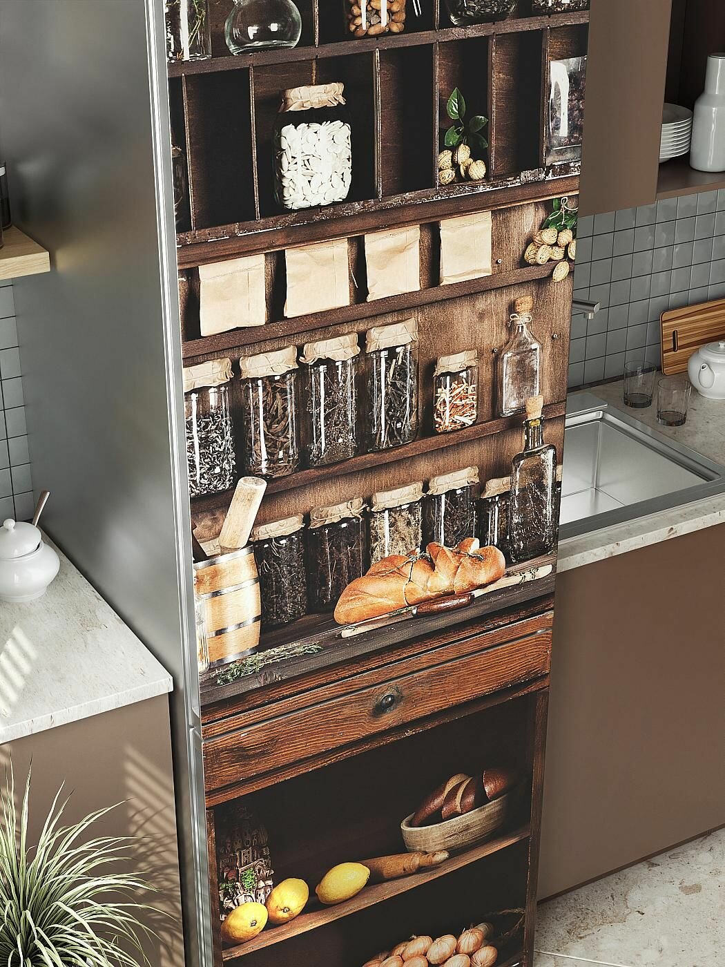 Самоклеящаяся пленка на холодильник 61х180 см. Интерьерная наклейка для кухни. Декоративная наклейка для мебели. интересное: