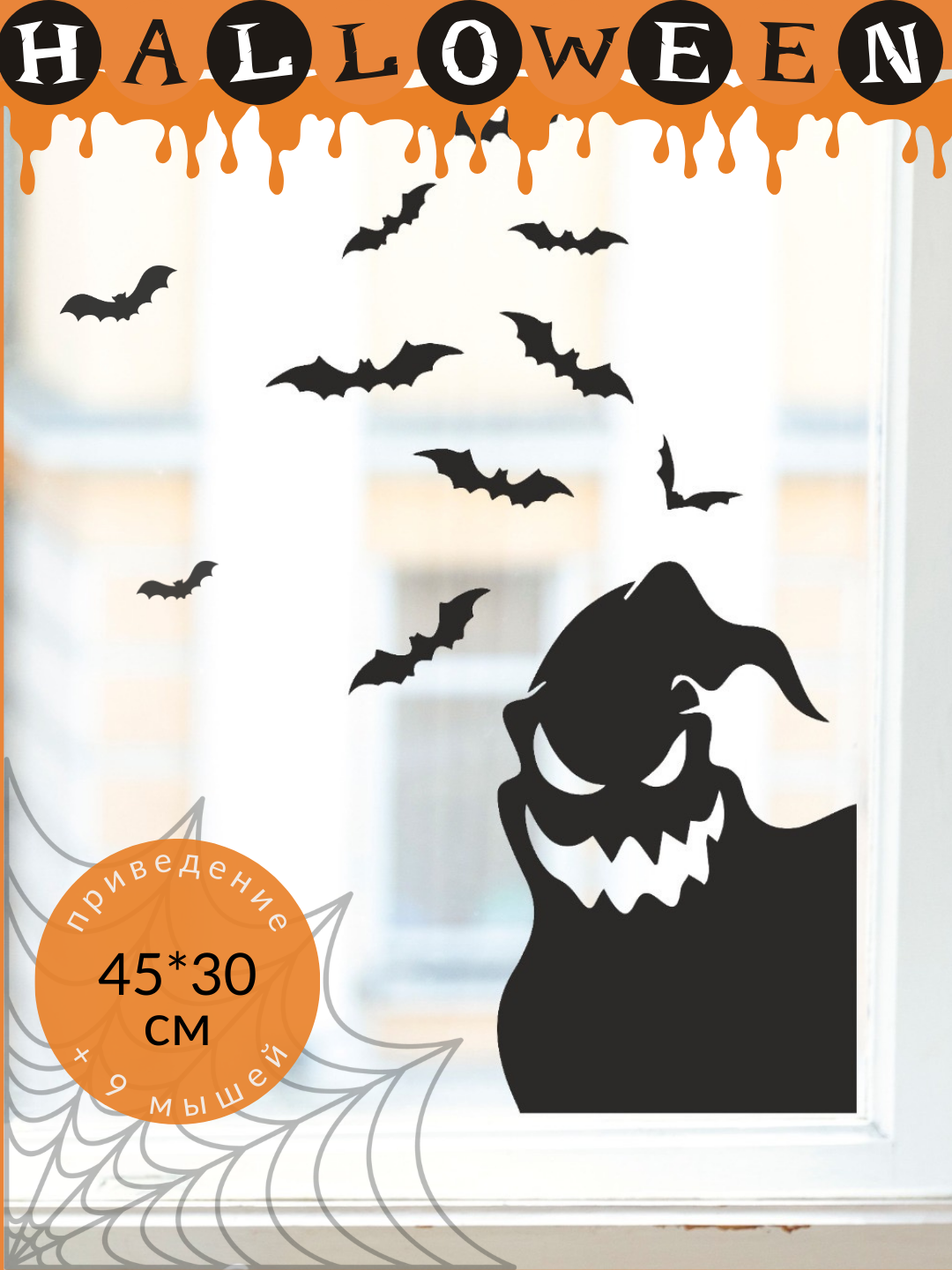 Купить Декор на Хэллоуин наклейка Приведение и летучие мыши Lisadecor