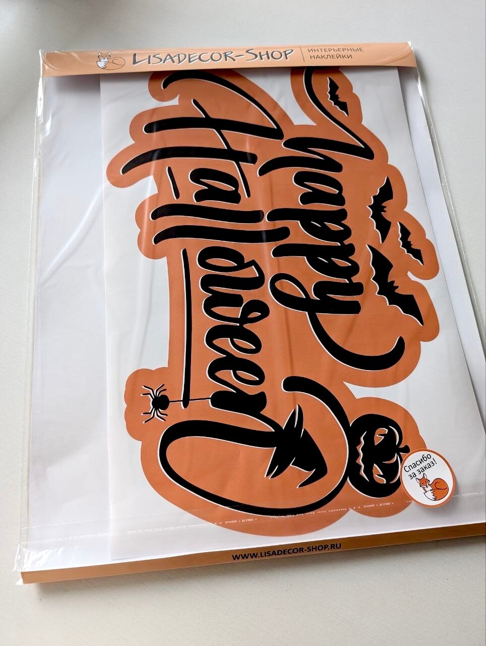 Декор на Хэллоуин наклейка надпись Happy Halloween Lisadecor интересное: