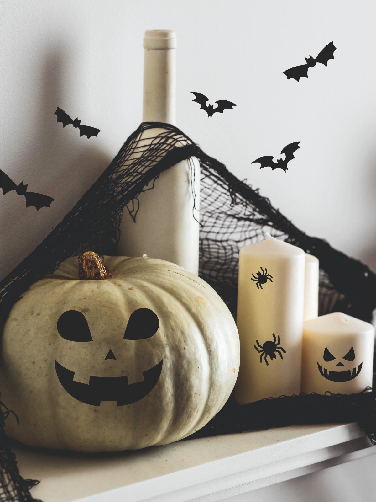 Декор на Хэллоуин наклейка Приведение и летучие мыши Lisadecor