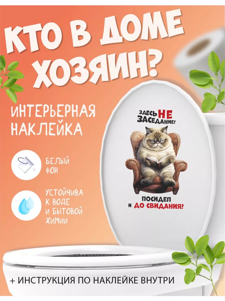 Наклейка на унитаз с котом - здесь не заседание!