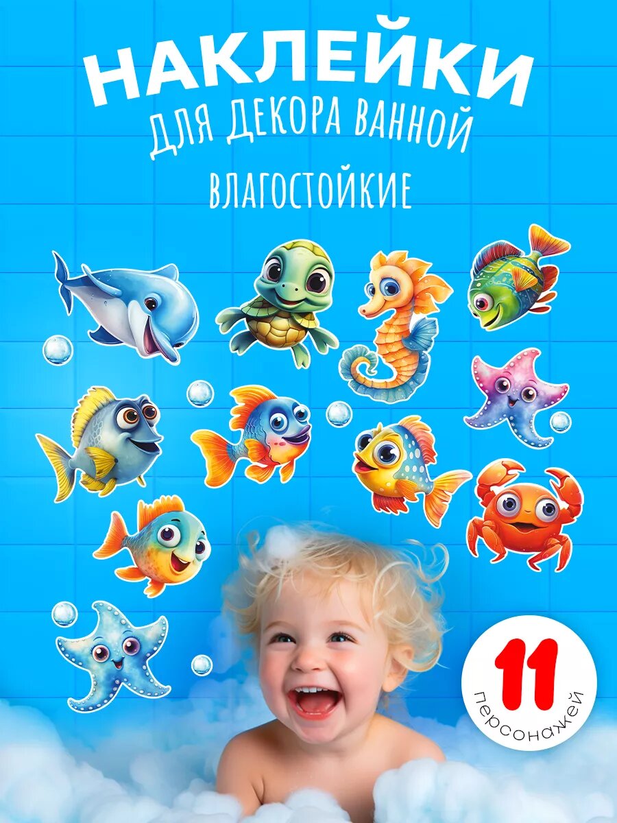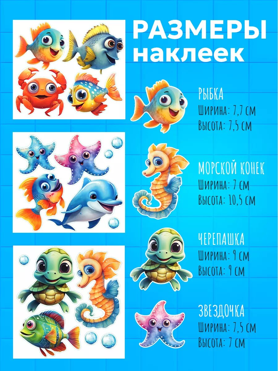 Наклейки "Морские обитатели" рыбки детские интерьерные интересное: