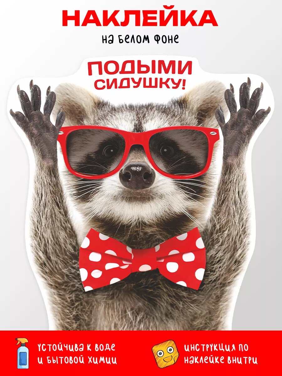 Наклейка прикол на крышку унитаза Подыми сидушку с енотом интересное: