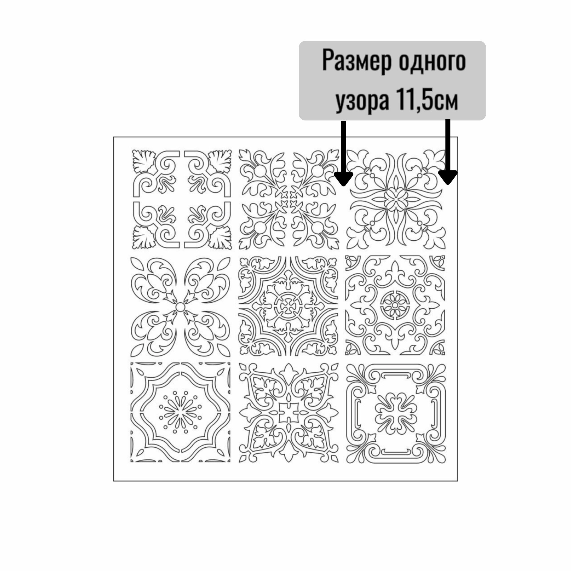 Набор №1 Трафаретов для плитки 10Х10 см 6 штук ПЭТ - 0,5 мм