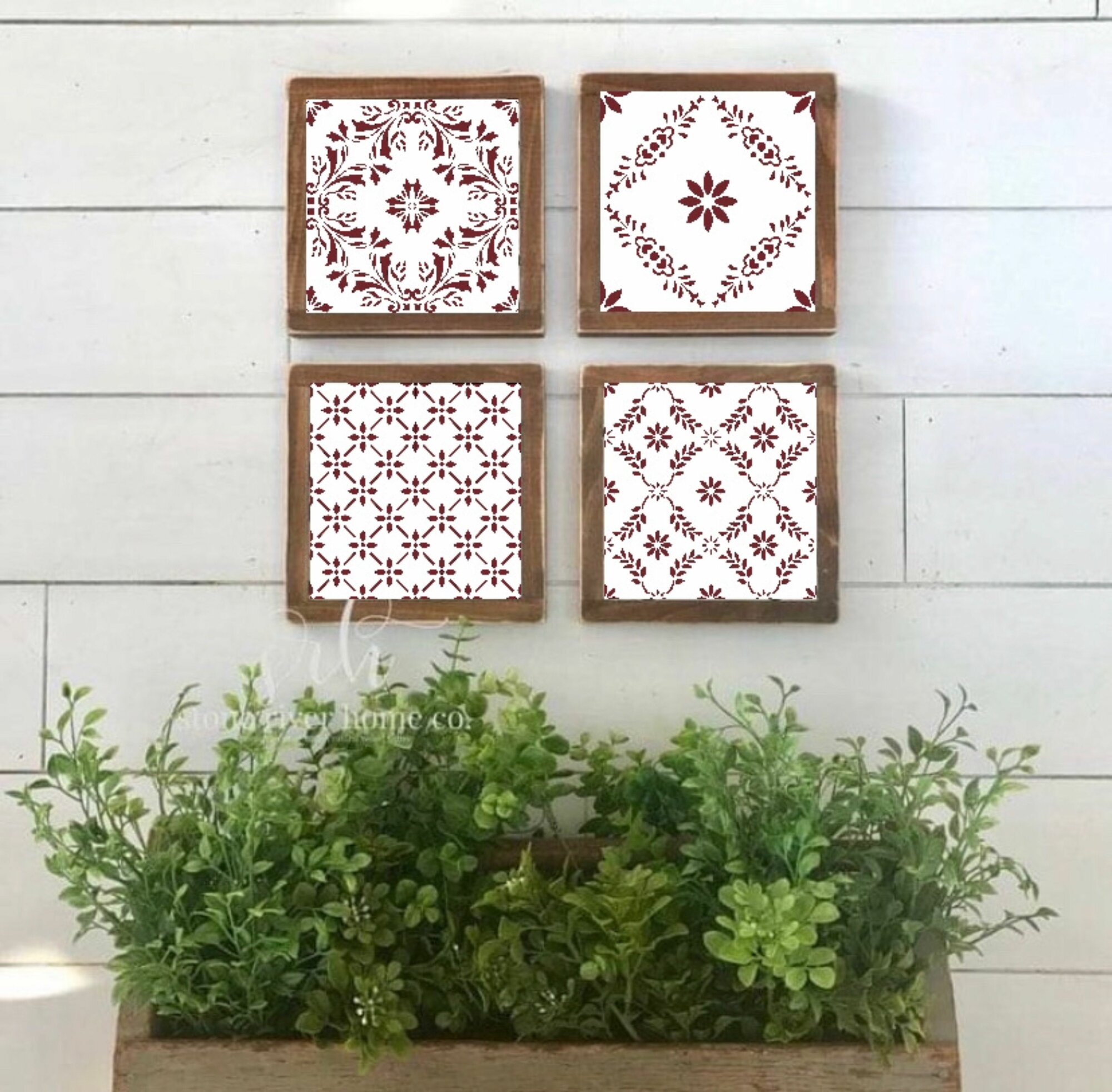 Набор №4 трафаретов для плитки 6 шт. размер 10х10 см, толщина 0,5 мм для декора стен, ткани и творчества