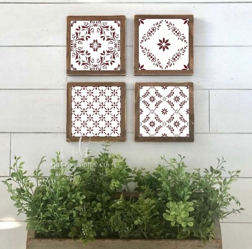 Набор №4 трафаретов для плитки 6 шт. размер 10х10 см, толщина 0,5 мм для декора стен, ткани и творчества