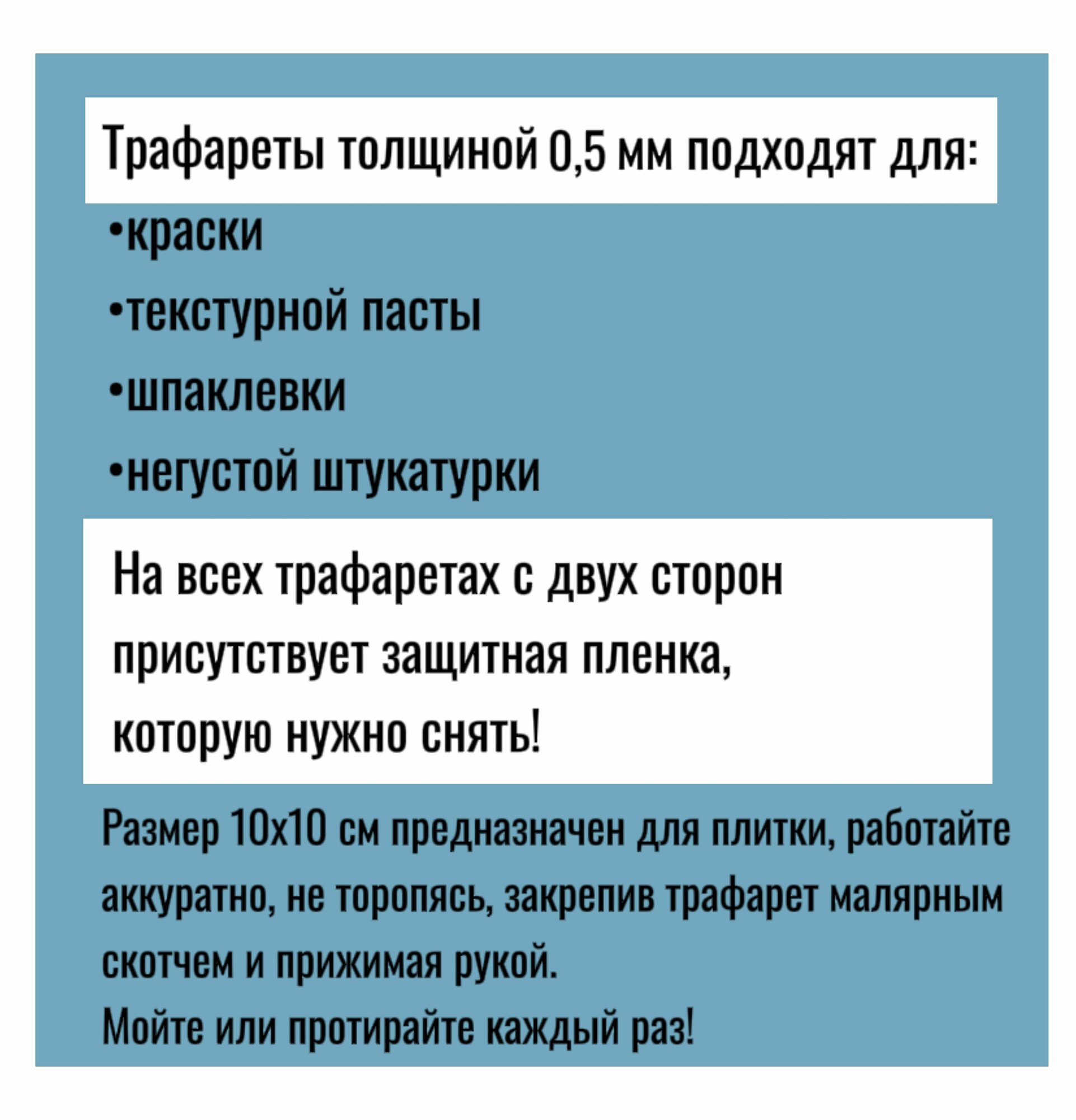Набор №1 Трафаретов для плитки 10Х10 см 6 штук ПЭТ - 0,5 мм интересное: