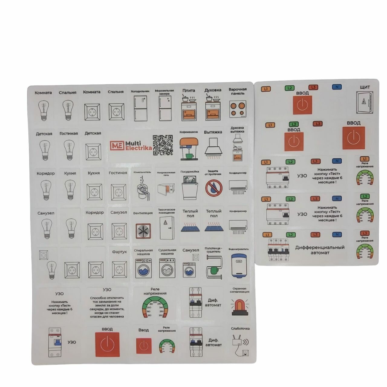 Набор наклеек, маркировка для электрощита, и электрических автоматов - 96 наклеек