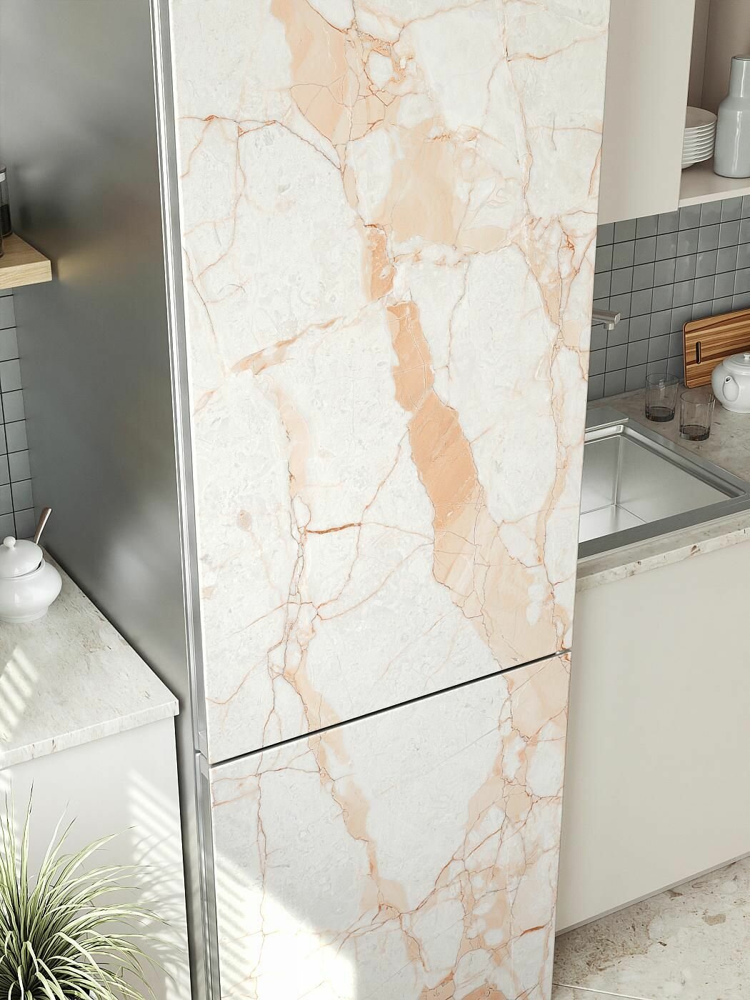 Купить Самоклеящаяся пленка на холодильник 65х200 см. Интерьерная наклейка для кухни. Декоративная наклейка для мебели.