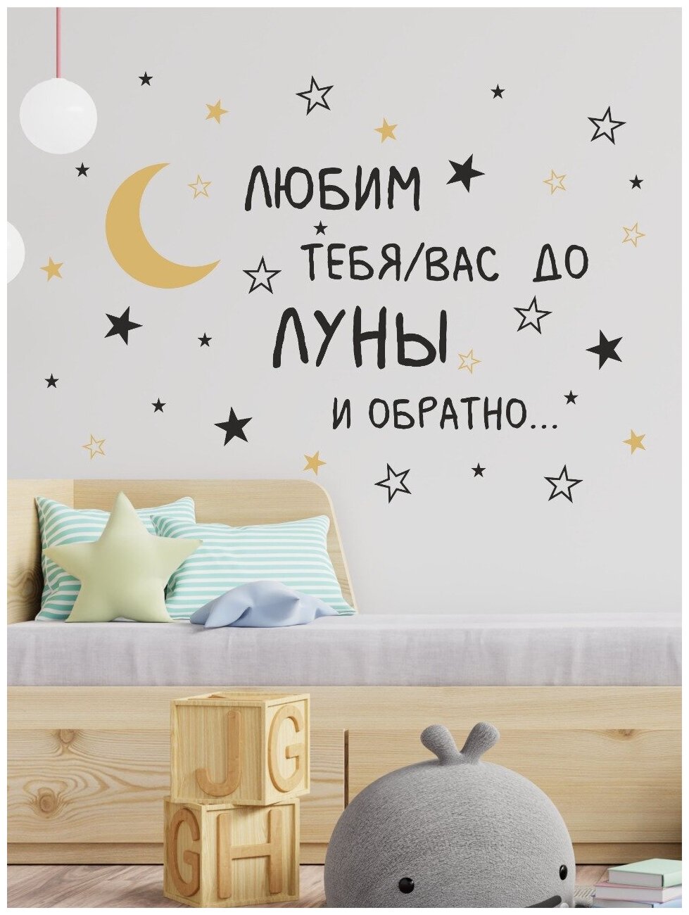 Наклейка интерьерная на стену Любим до луны и обратно серо-белая для детской или спальни Lisadecor-shop