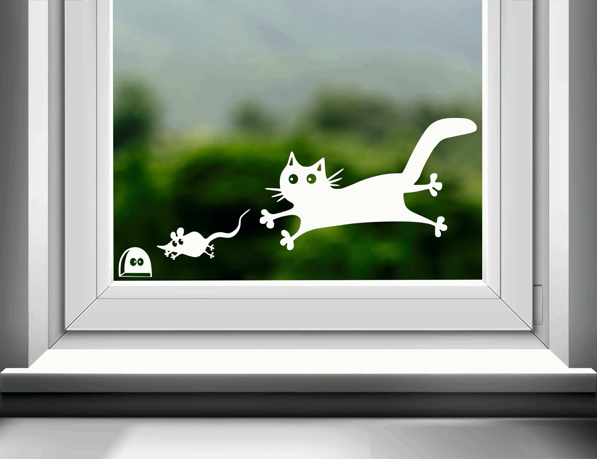 Наклейка для оформления окон и витрин "Кот и мышка" (47.5х20 см.). интересное: