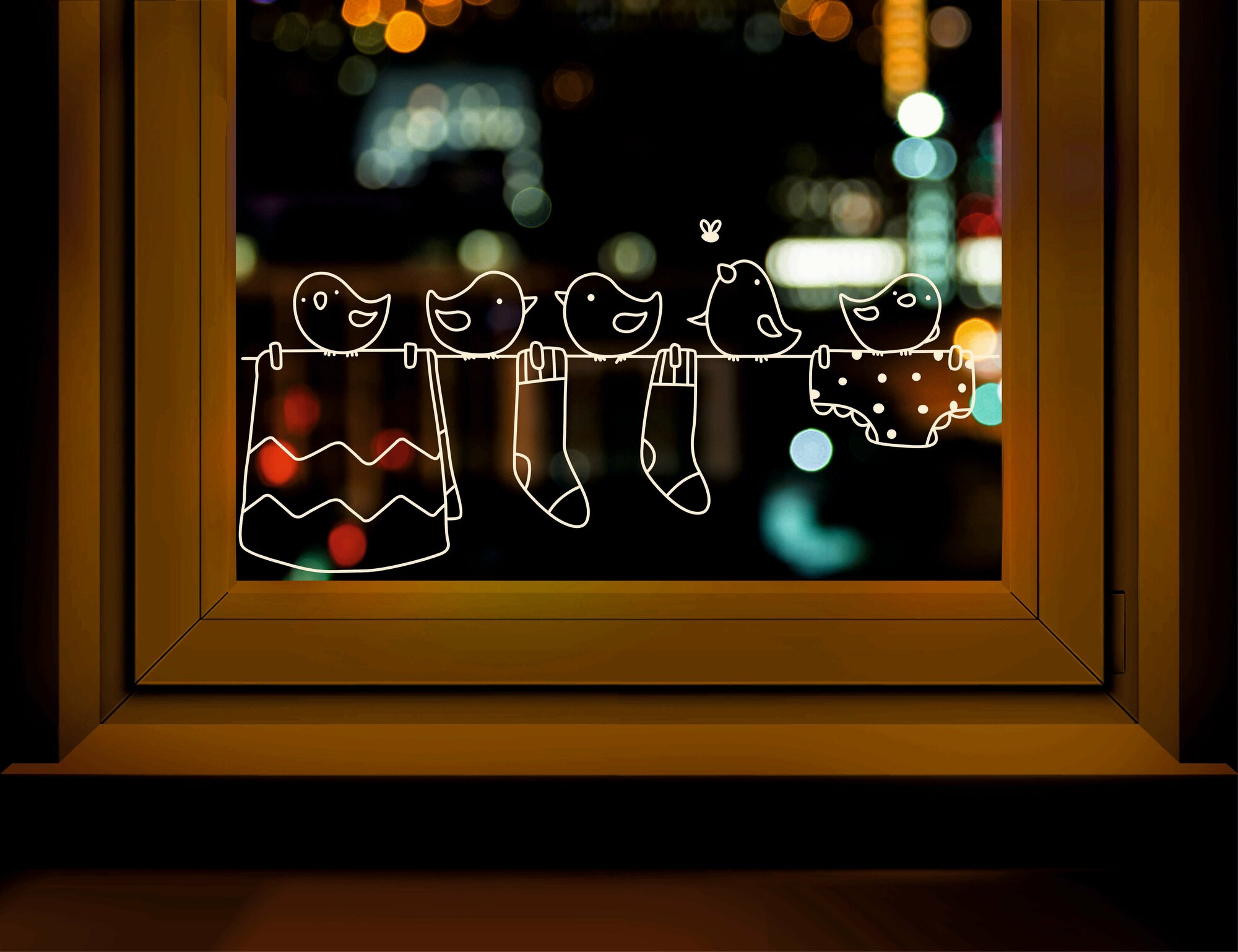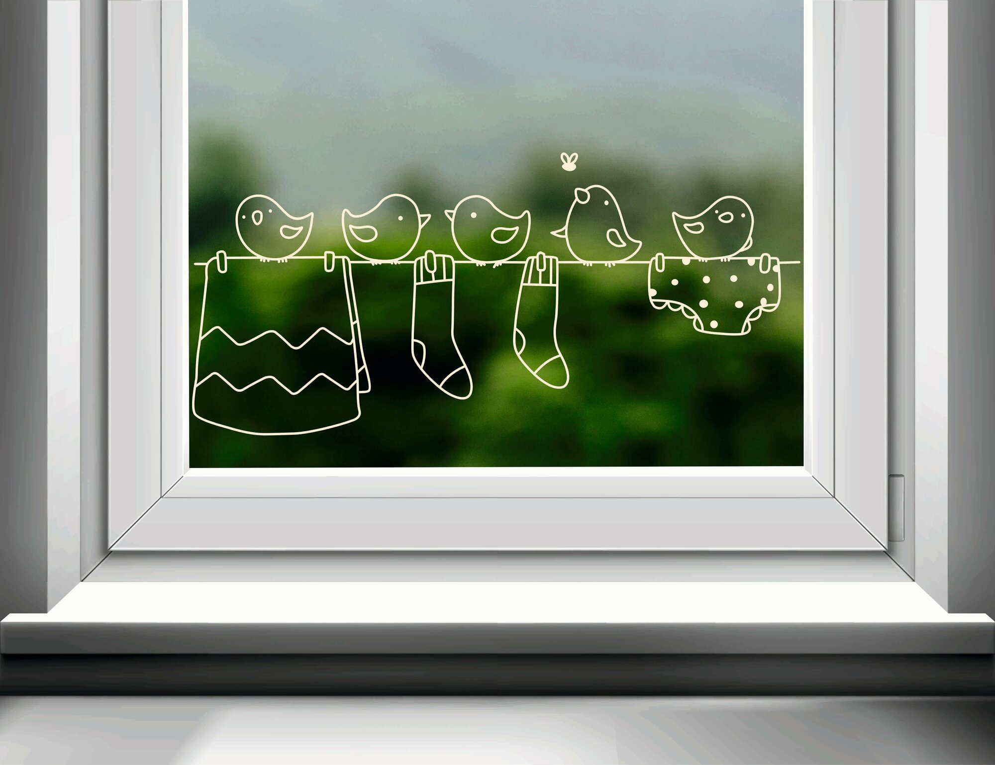 Купить Наклейка для оформления окон и витрин "Птички на веревочке" (50х25см.).