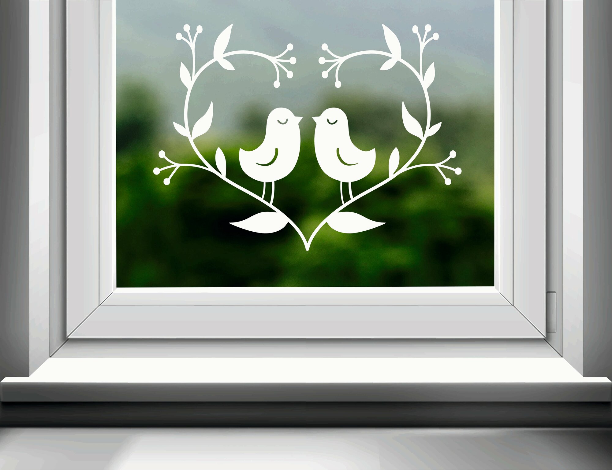 Купить Наклейка для оформления окон и витрин "Птички в сердце" (40х32 см.).