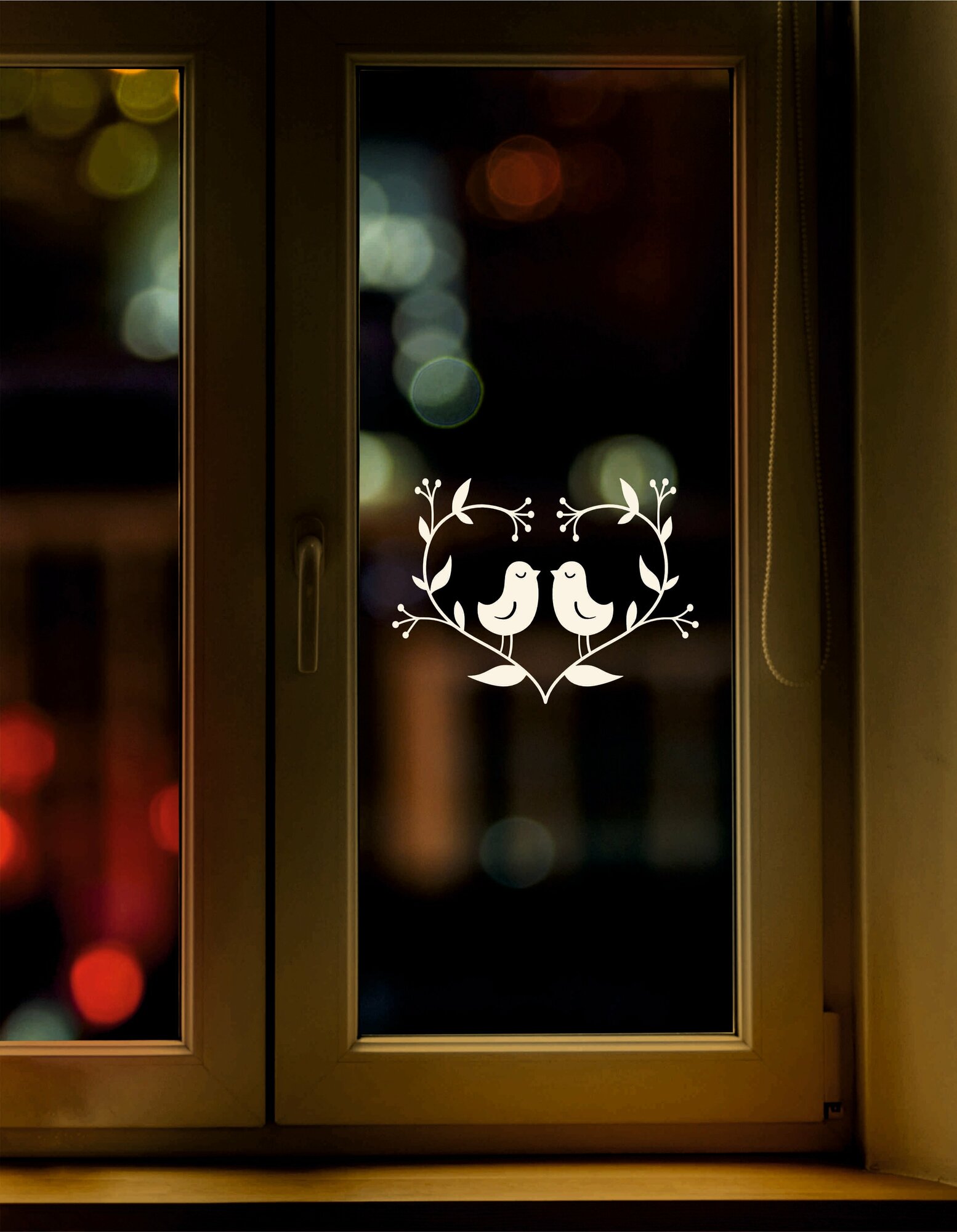Наклейка для оформления окон и витрин "Птички в сердце" (40х32 см.). интересное: