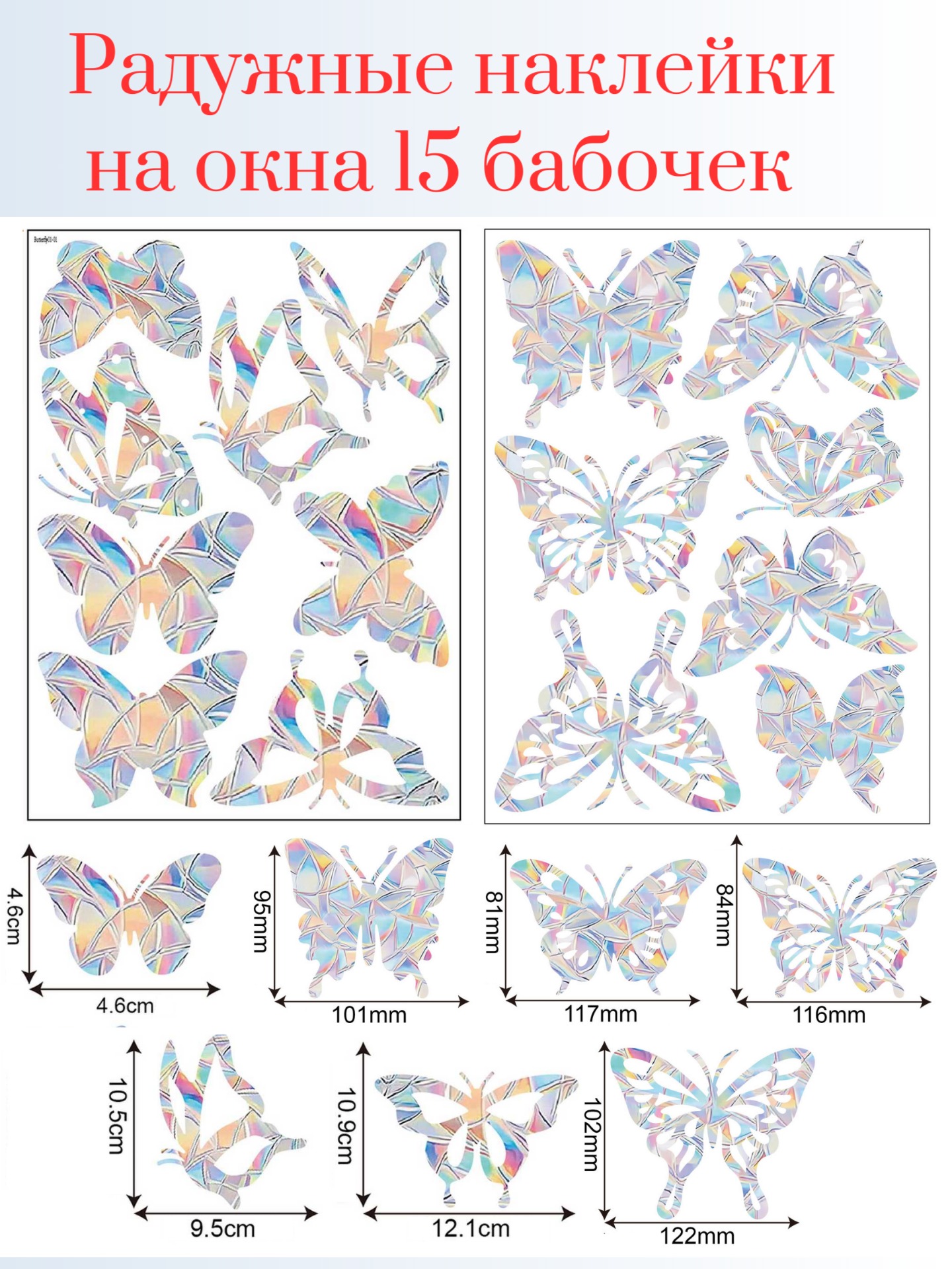 Наклейки на окно "Бабочки", самоклеящиеся, для создания радуги, 15шт интересное: