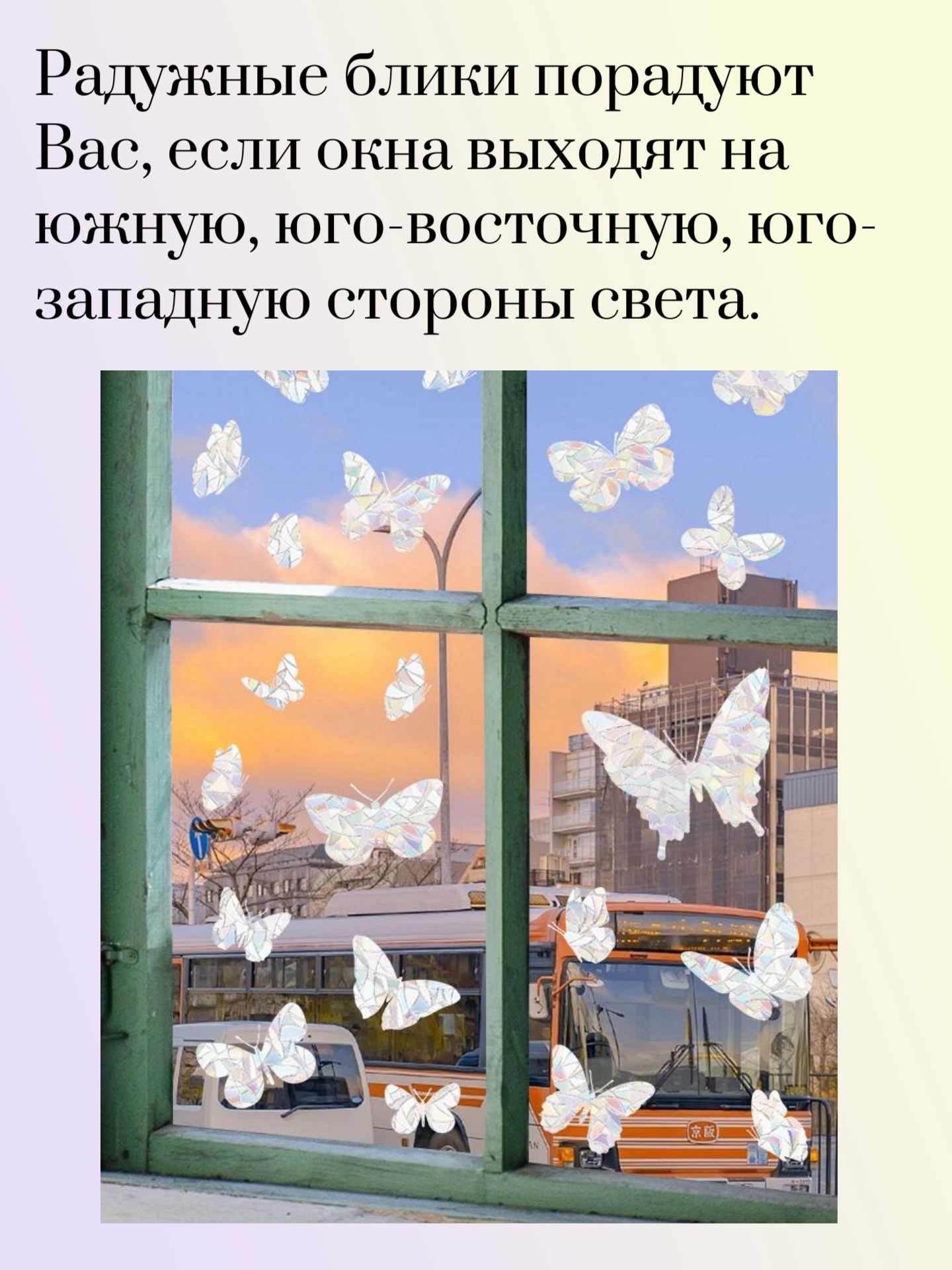 Ниже Вы можете прочитать отзывы на Наклейки на окно "Бабочки", самоклеящиеся, для создания радуги, 15шт, ознакомится с подробными характеристиками, посмотреть интересные обзоры и фотографии на Наклейки на окно "Бабочки", самоклеящиеся, для создания радуги, 15шт.