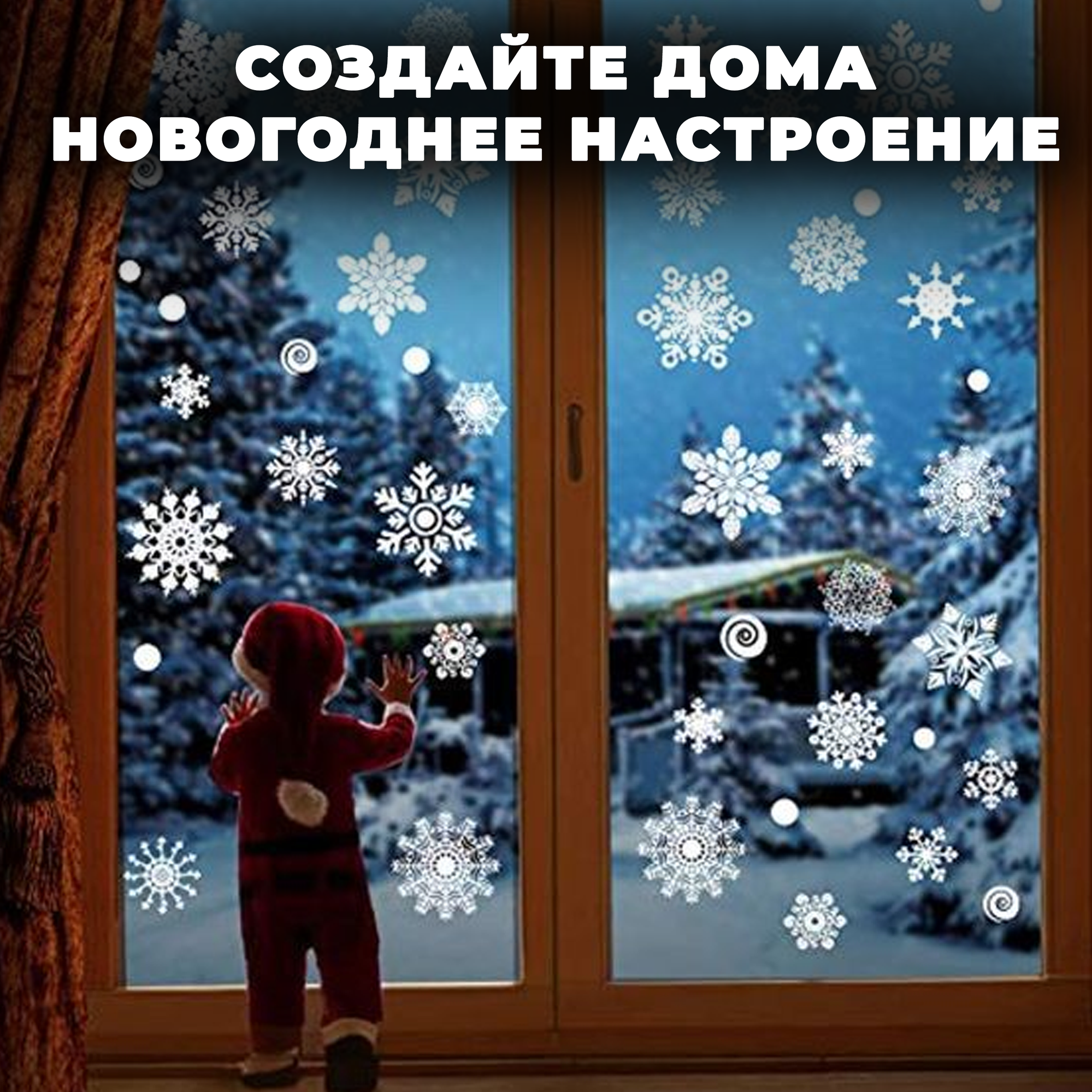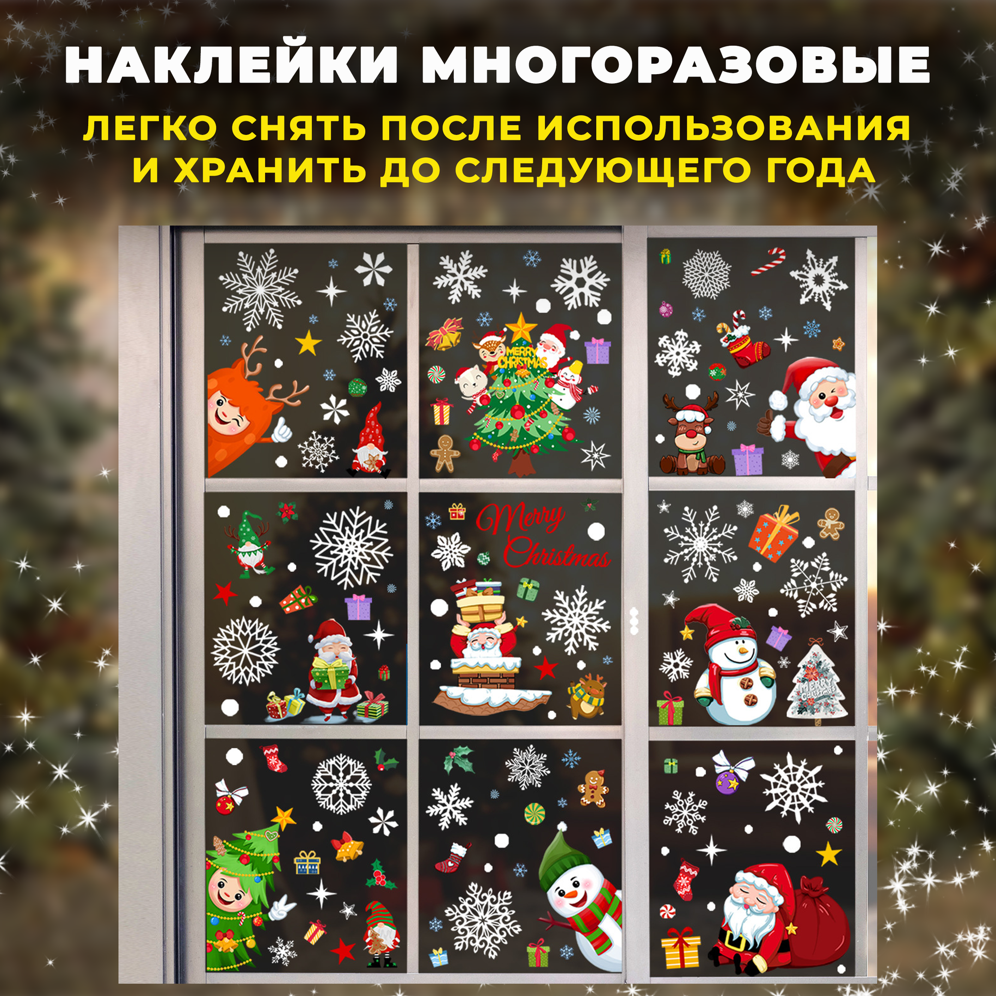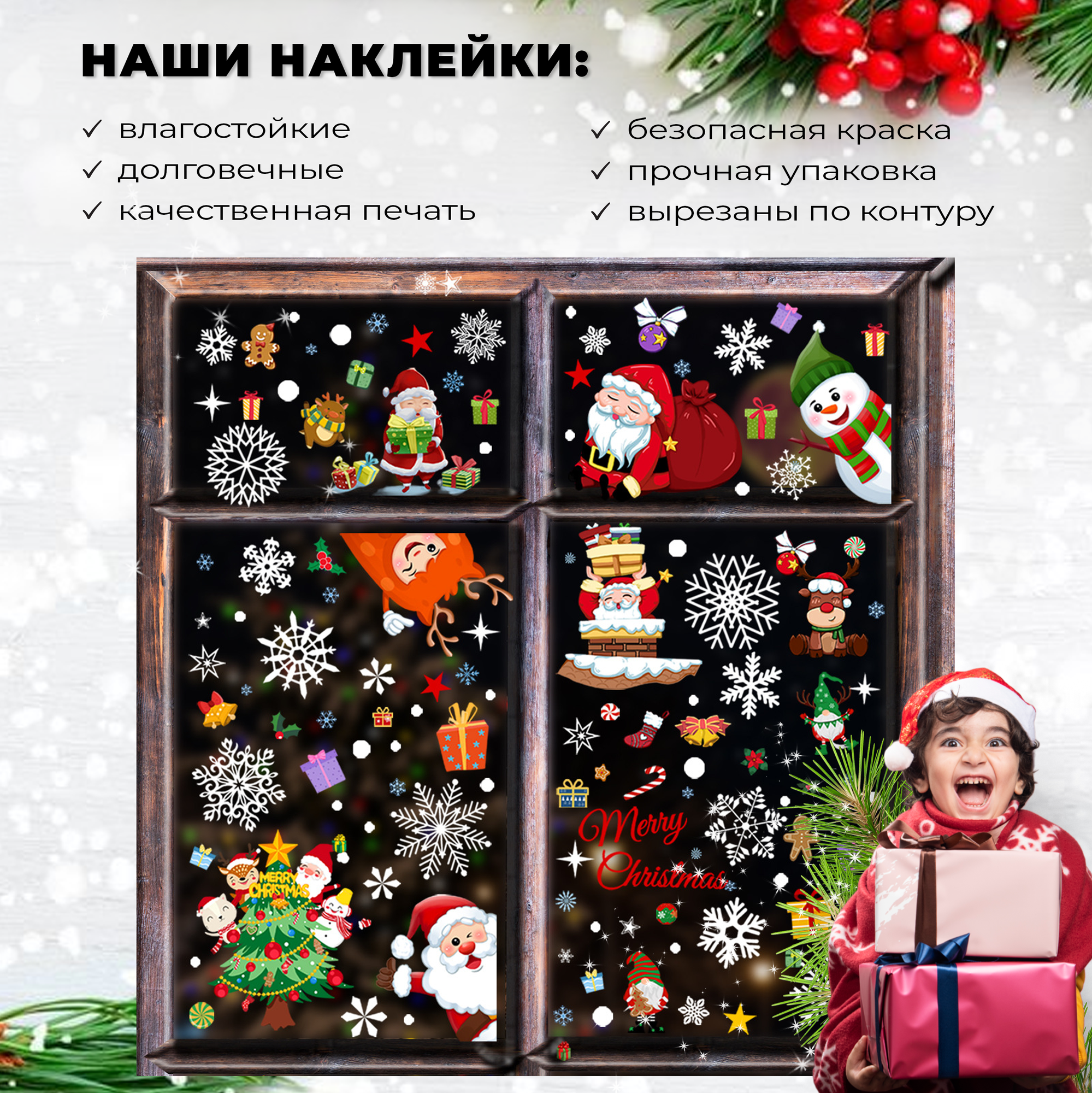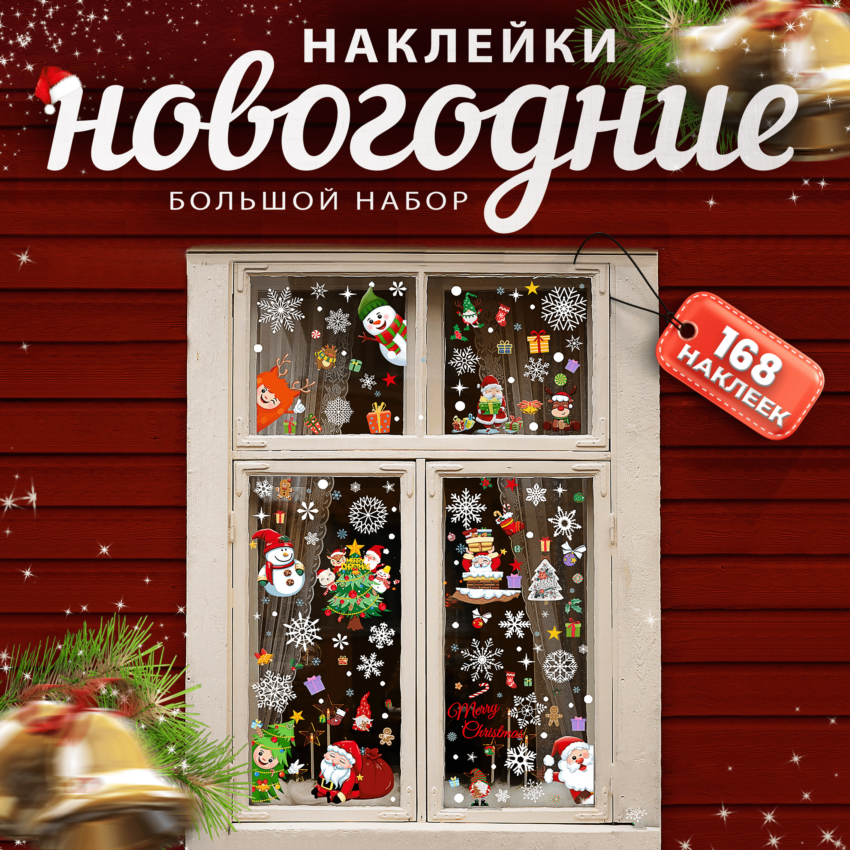 Купить Новогодние наклейки на окна, зеркала, мебель, бытовую технику. Большой набор из 168 штук.