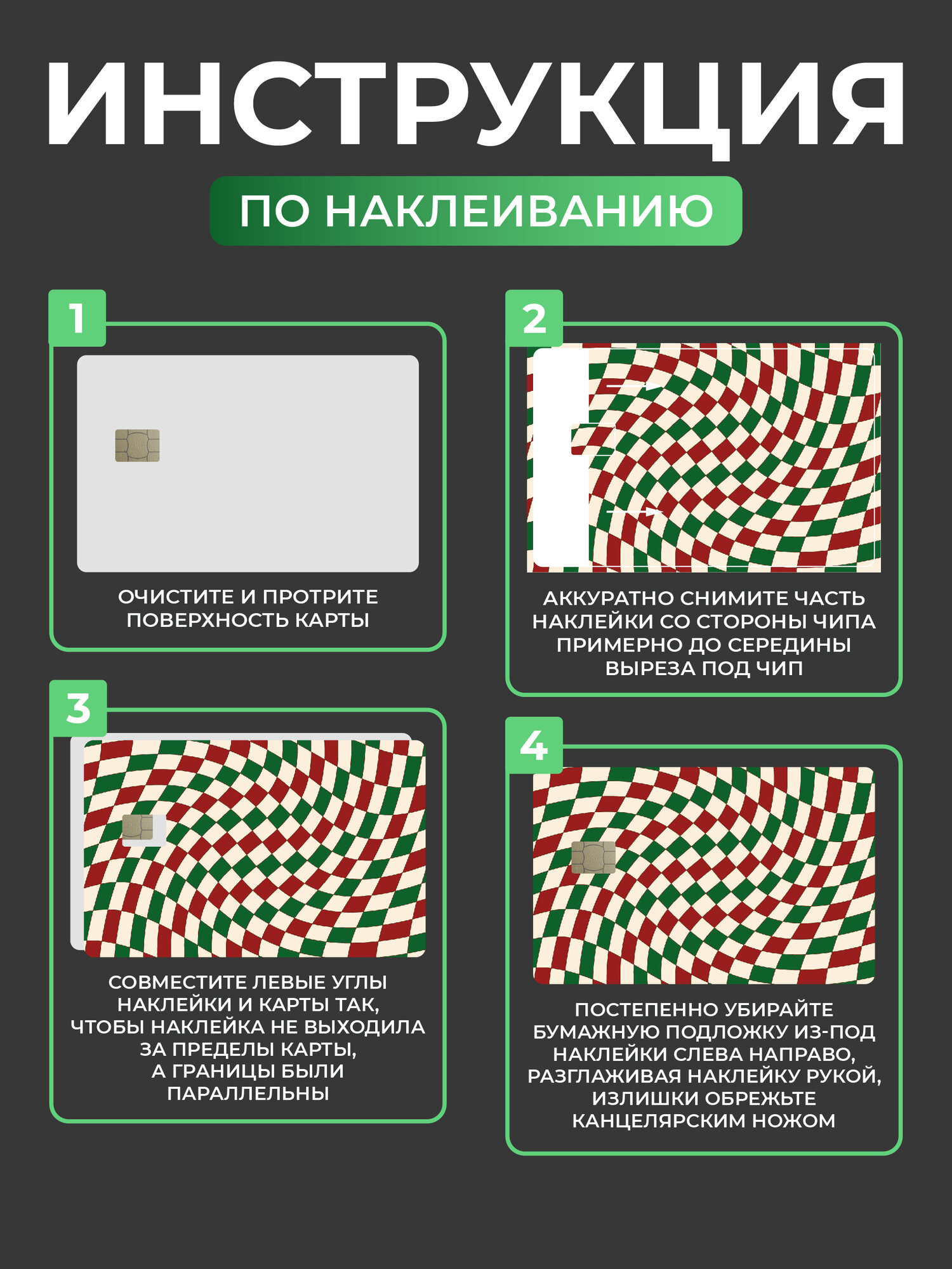 Наклейка на карту Красно-зелёная клетка (абстракция), Сити Бланк интересное: