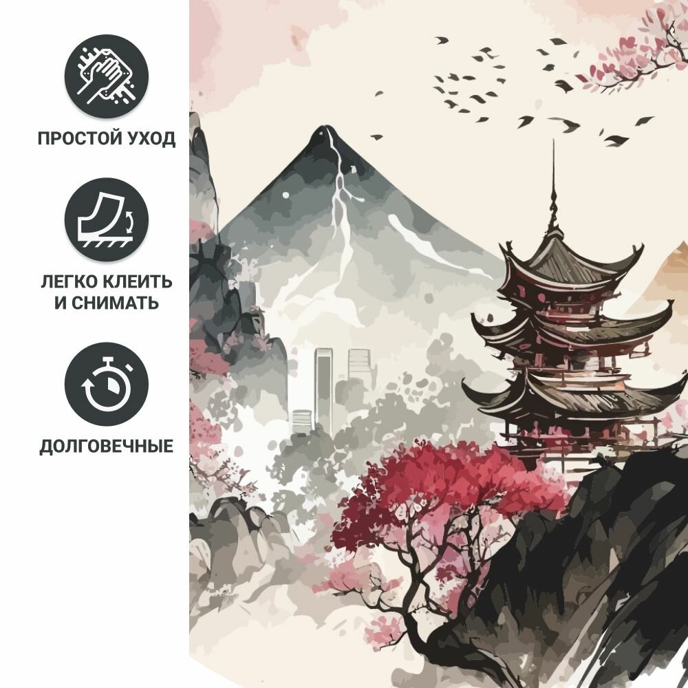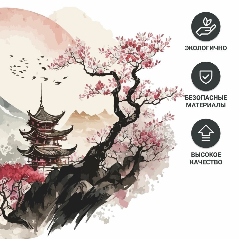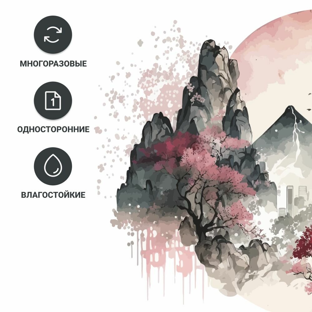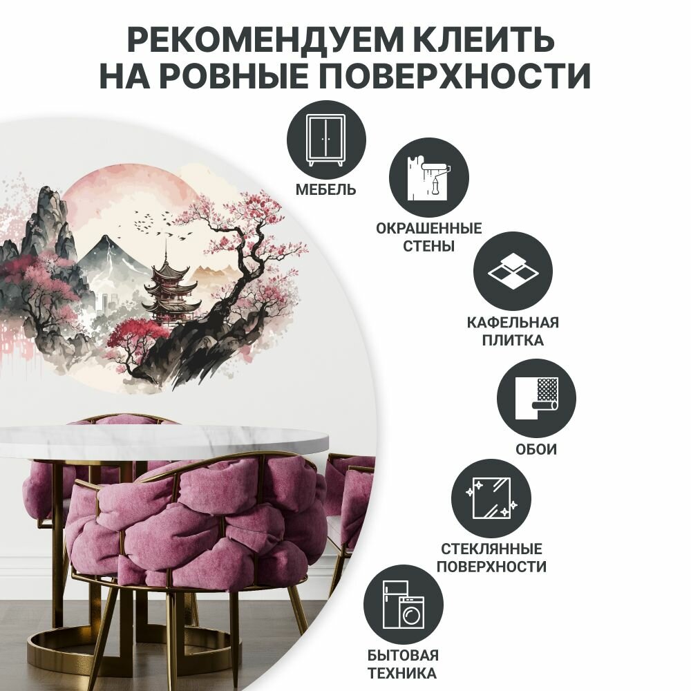 Наклейка для интерьера на стену "Суми- э" Stik, виниловое украшение на окно в кухню, гостиную, детскую. Декор на дверь и мебель. интересное: