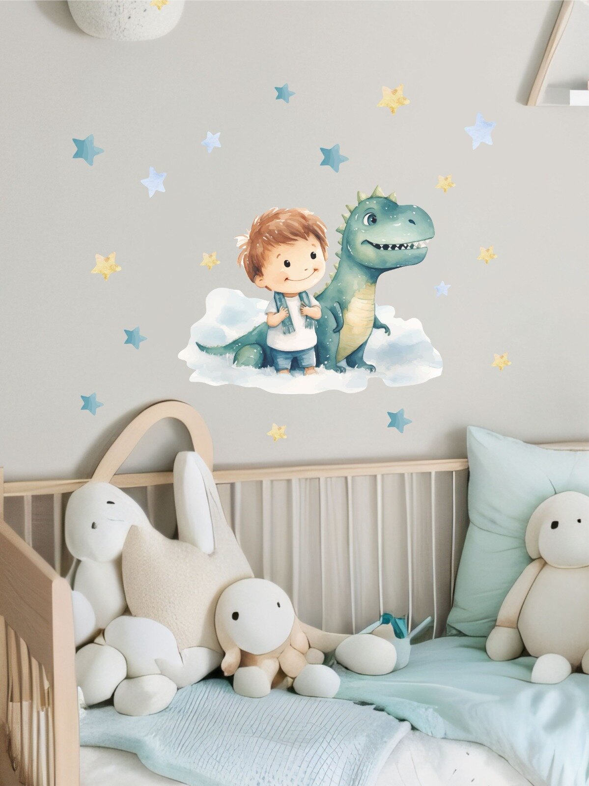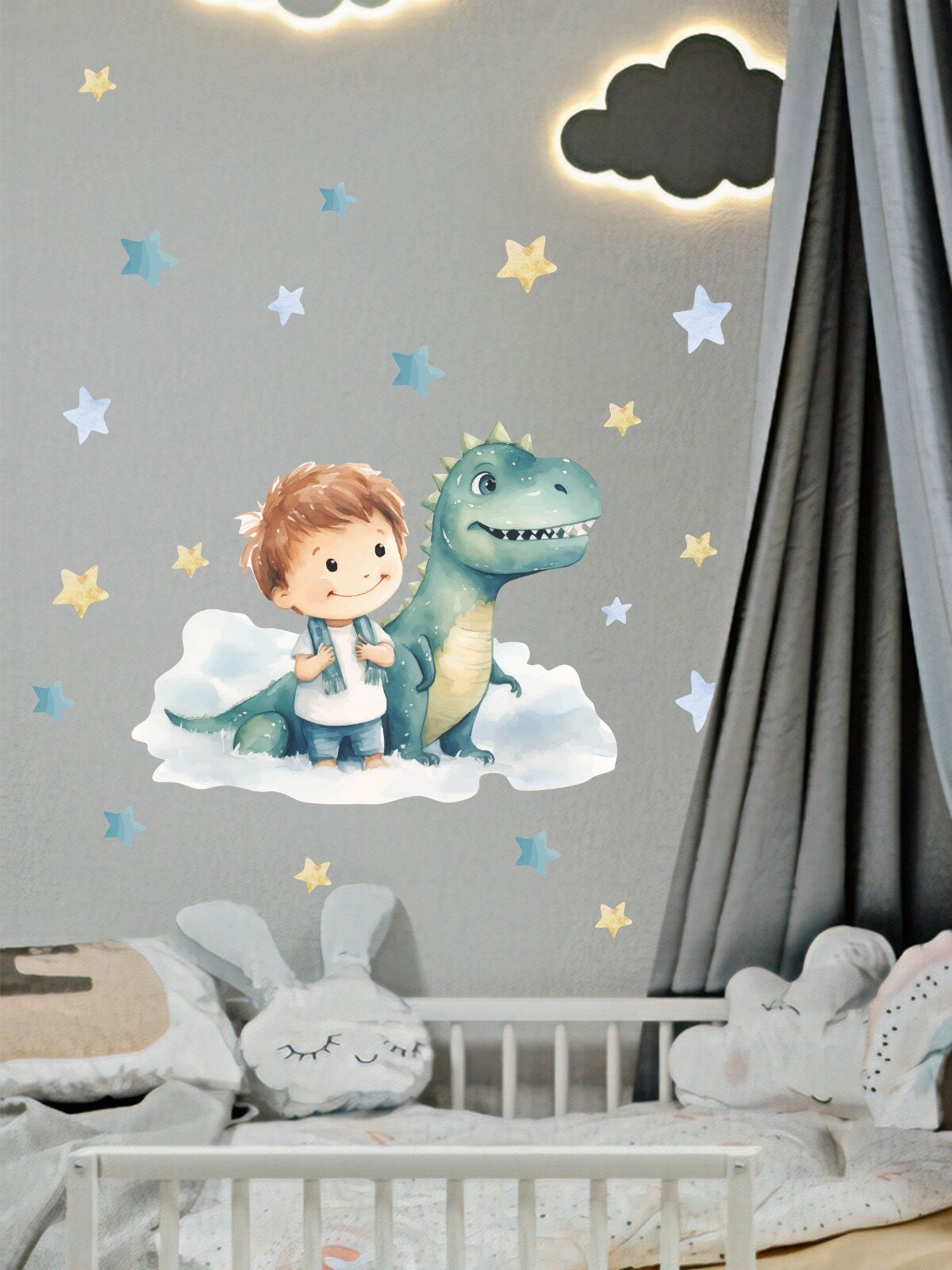 Купить Наклейки интерьерные на стену Малыш и динозаврик на самолете для детской комнаты Lisadecor