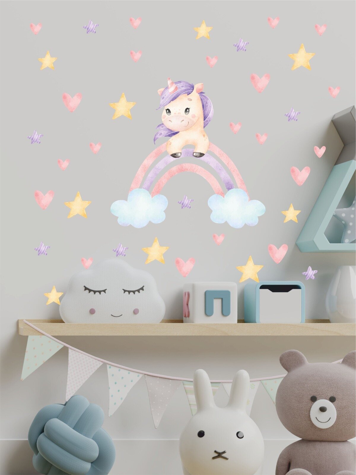 Купить Наклейки интерьерные на стену Единорог на радуге, сердечки, звездочки для девочки Lisadecor