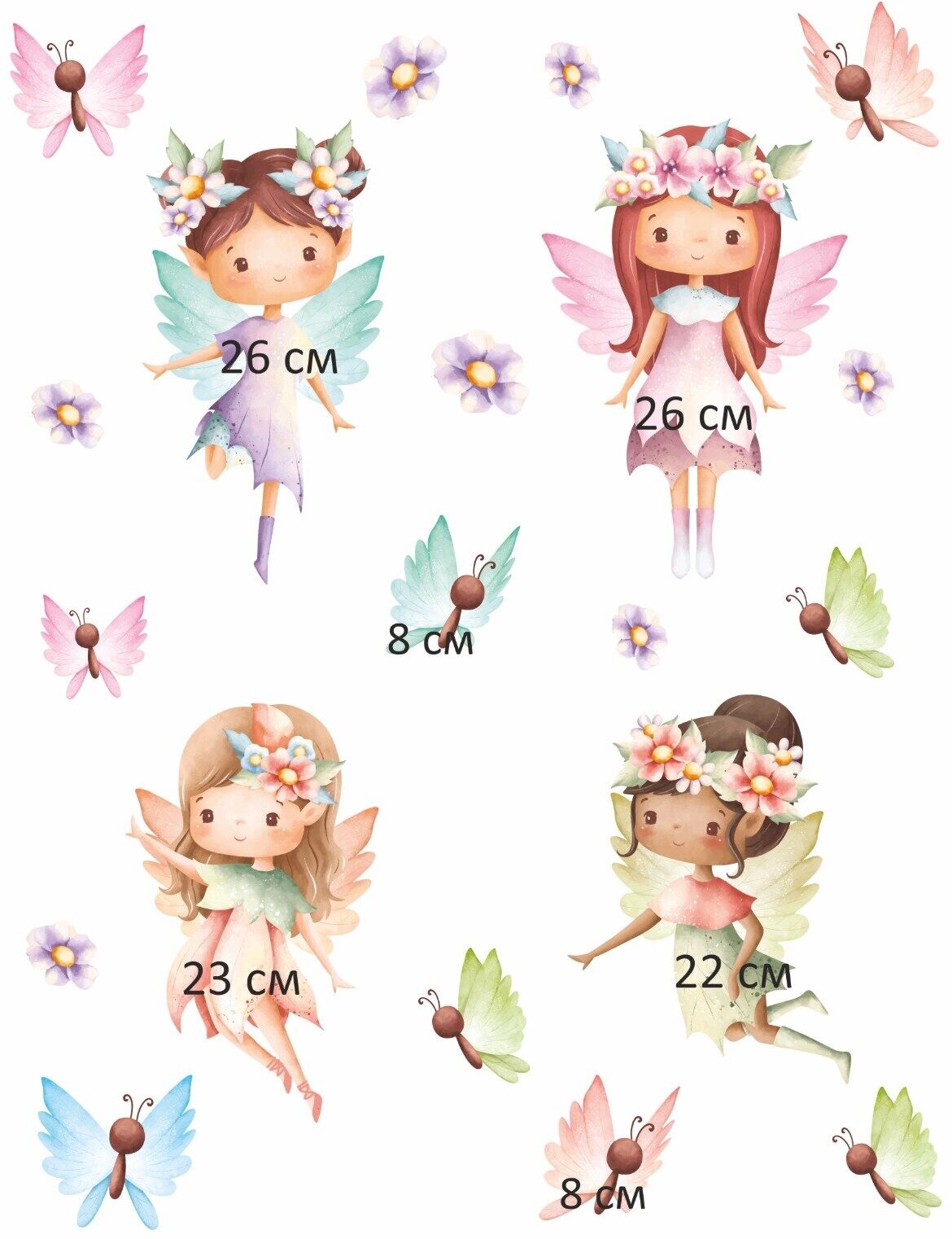 Купить Наклейки интерьерные на стену Феи, цветы и бабочки для детской Lisadecor